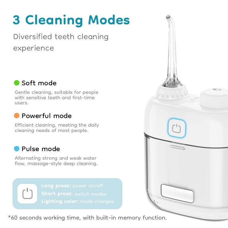 Airuidu CF410 Water Flosser Mini for Travel IPX Waterproof Oral Irrigator Water Floss Gigi 3 Modes Dental Waterfloss