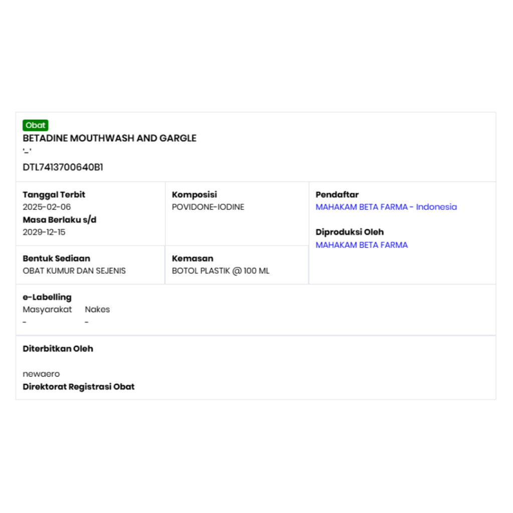 Betadine Mouthwash and Gargle 1% 100 Ml