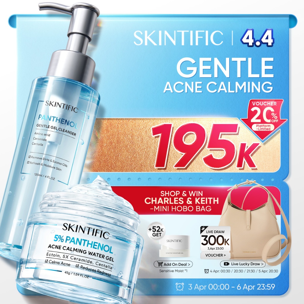 SKINTIFIC - 2PCS Panthenol Gentle Gel Set | Cleanser Moisturizer Water Gel Acne Calming Oil Control Deep Clean Pembersihan Pori-pori Light Weight Texture Bundle Combo