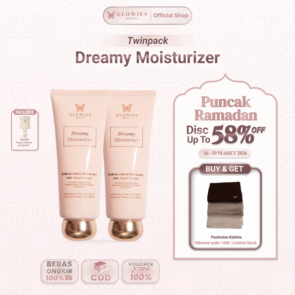 2pcs Dreamy Moisturizer Glowies Beauty 80ml Pelembap wajah Kering dan Sensitif dengan 5x Ceramide & Hyaluronic Acid untuk Kulit Sehat dan Terhidrasi Mencerahkan Menghilangkan bekas jerawat PIE PIH Memperbaiki Skin Barrier dan Acne Repair Busui Friendly