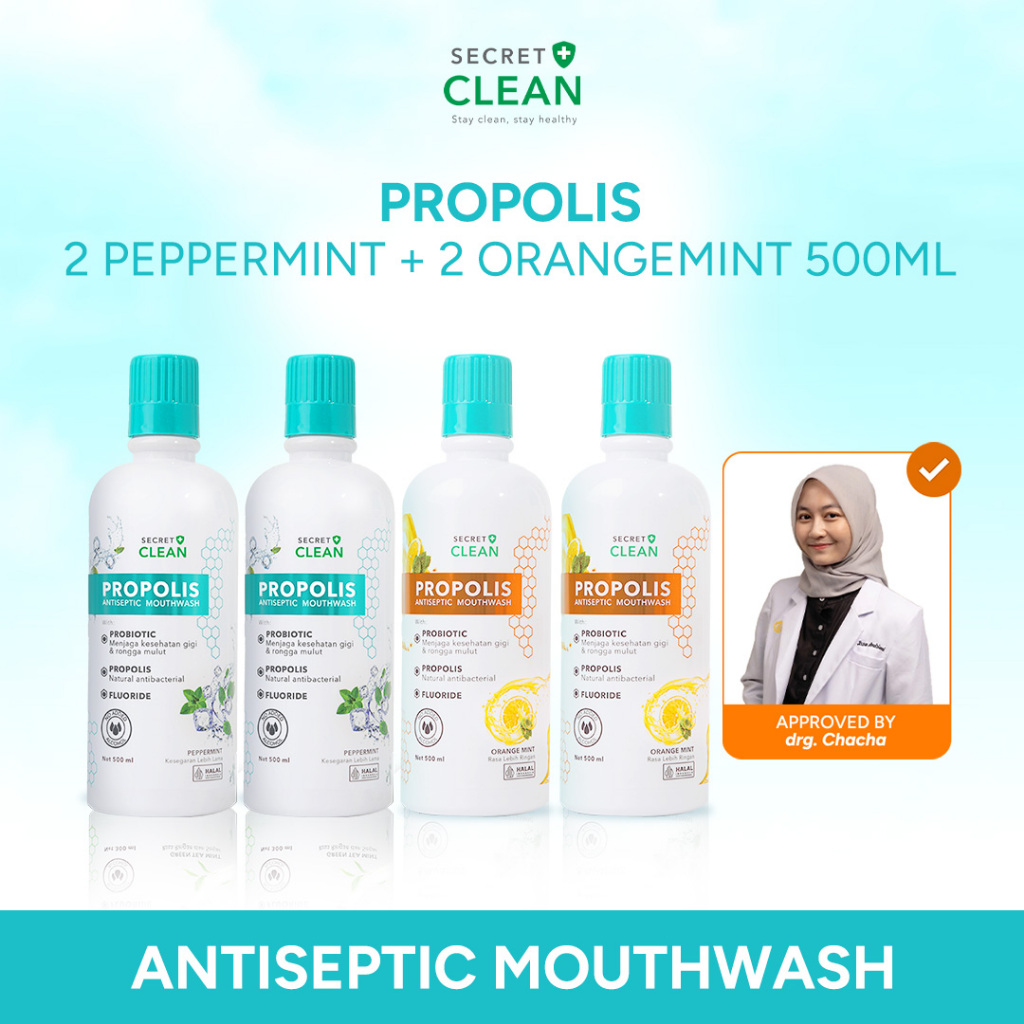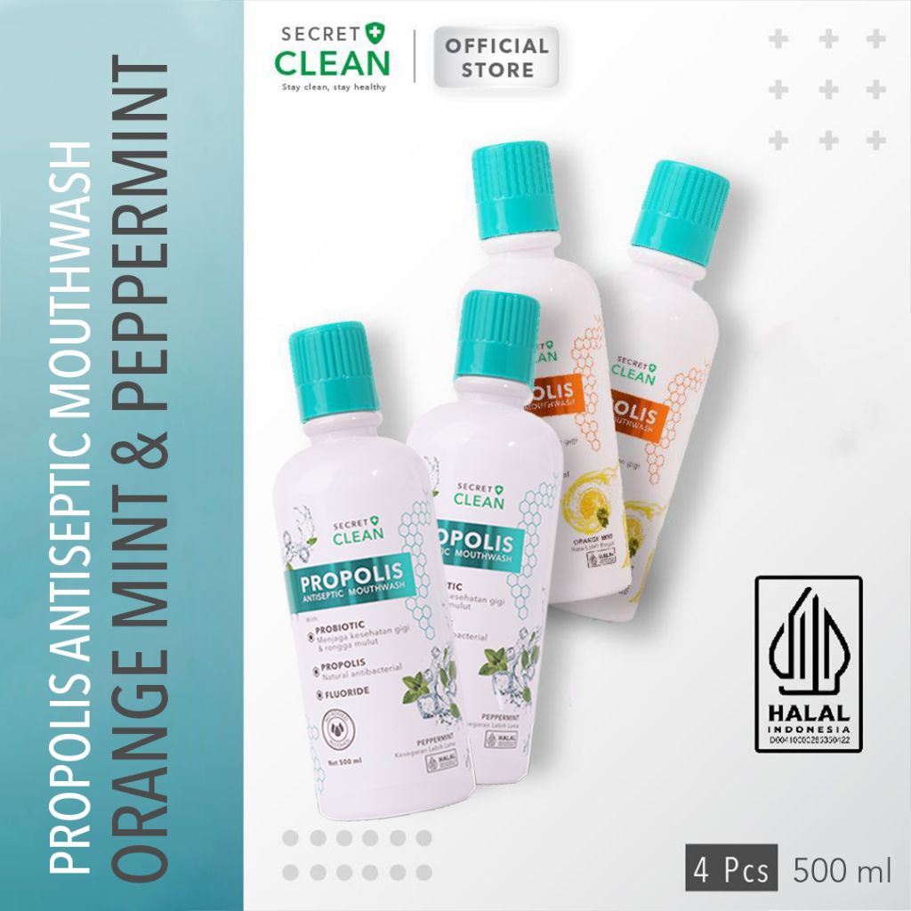 [4 Pcs] Secret Clean Paket Propolis Antiseptic Mouthwash 500ml | Obat Kumur Antiseptik Halal