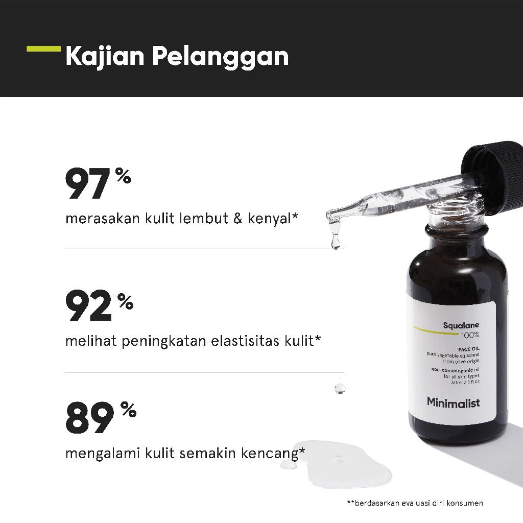 Minimalist 100% Squalane Face Oil | Melembabkan, Menghidrasi Kulit, & Mengurangi Garis Halus | 30ML