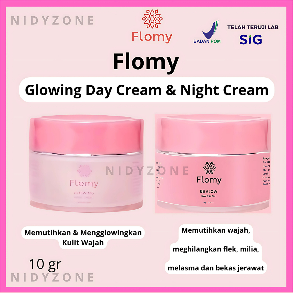 FLOMY DAY CREAM NIGHT CREAM ORIGINAL | KRIM SIANG KRIM MALAM WAJAH Mencerahkan, Melembabkan, Anti Aging, Glowing & UV Protection BPOM 10 gr