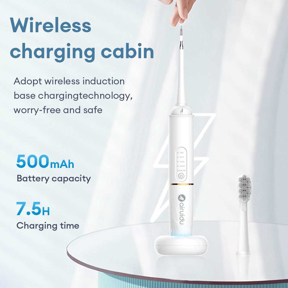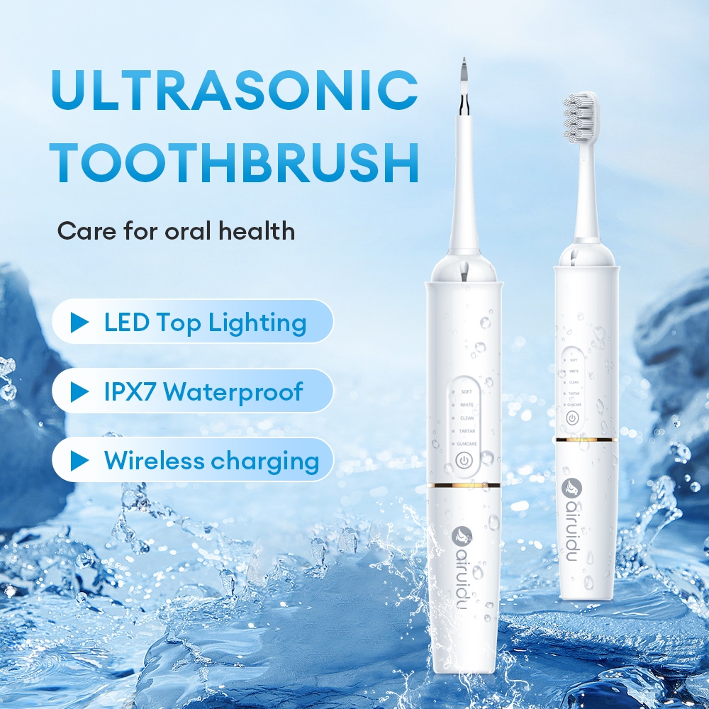 Airuidu M09 Alat Pembersih Gigi 5 Mode 2 in 1 Portabel Sikat Gigi Elektrik IPX7 Waterproof Menghilangkan Karang Gigi Ultrasonic Pembersih Karang Gigi