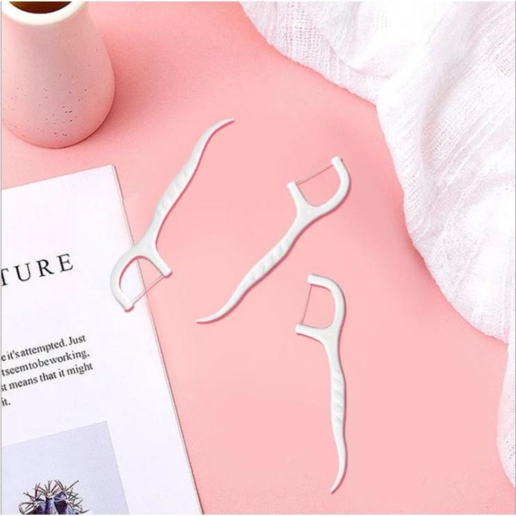Pembersih Celah Gigi Benang Busur Tusuk Gigi Macromolecul [Isi 1 Box 50 Pcs] / Dental Floss Flosser Toothpick Pengangkat Kotoran Sela Gigi Steril Higienis