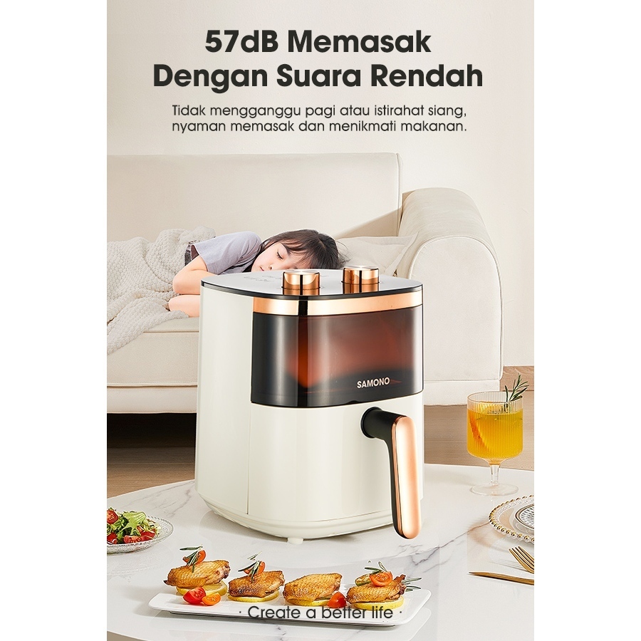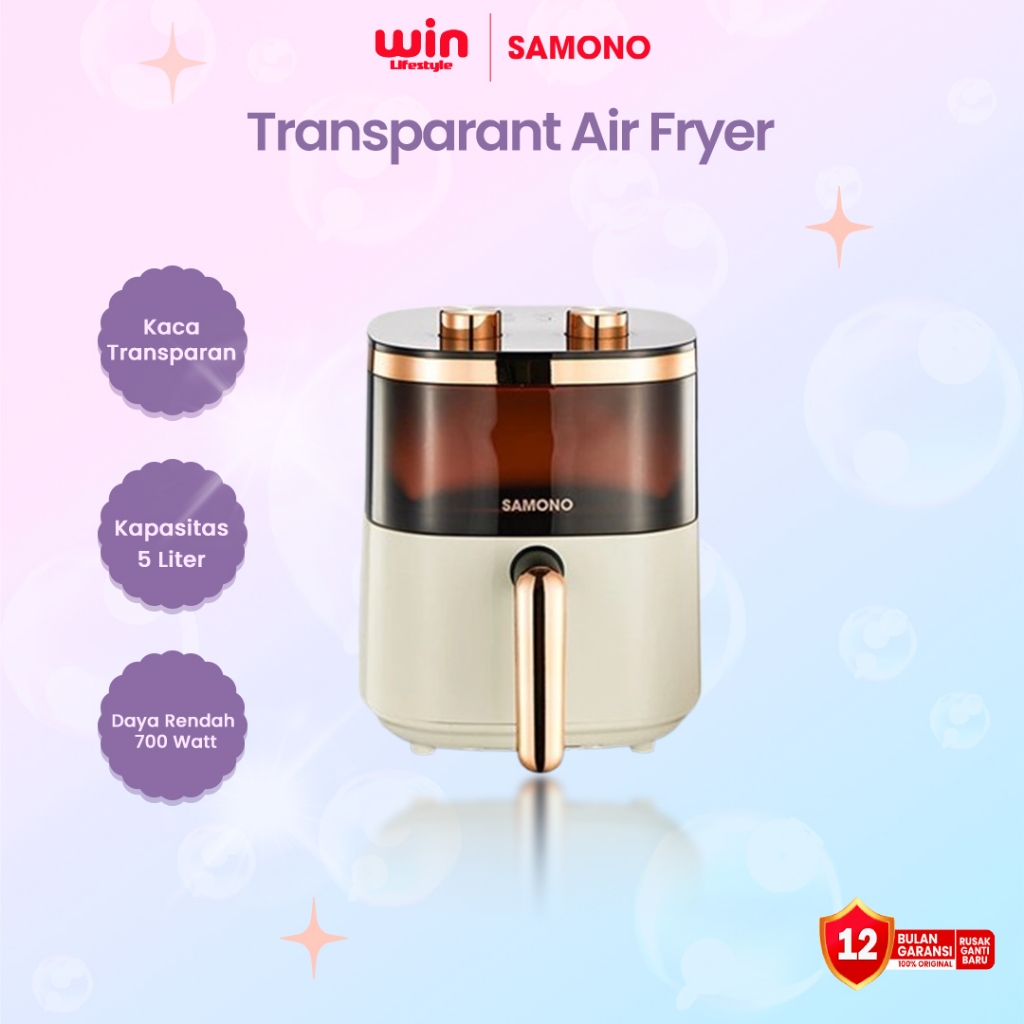 Samono Air Fryer 4 Liter 700 Watt SNI Hemat Listrik Mesin Menggoreng Tanpa Minyak Air Fryer Aesthetic Transparan SW-AFW04S - Garansi 1 Tahun
