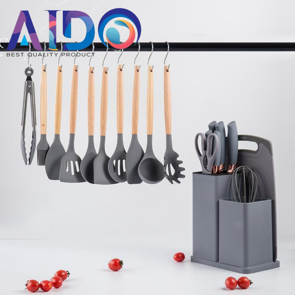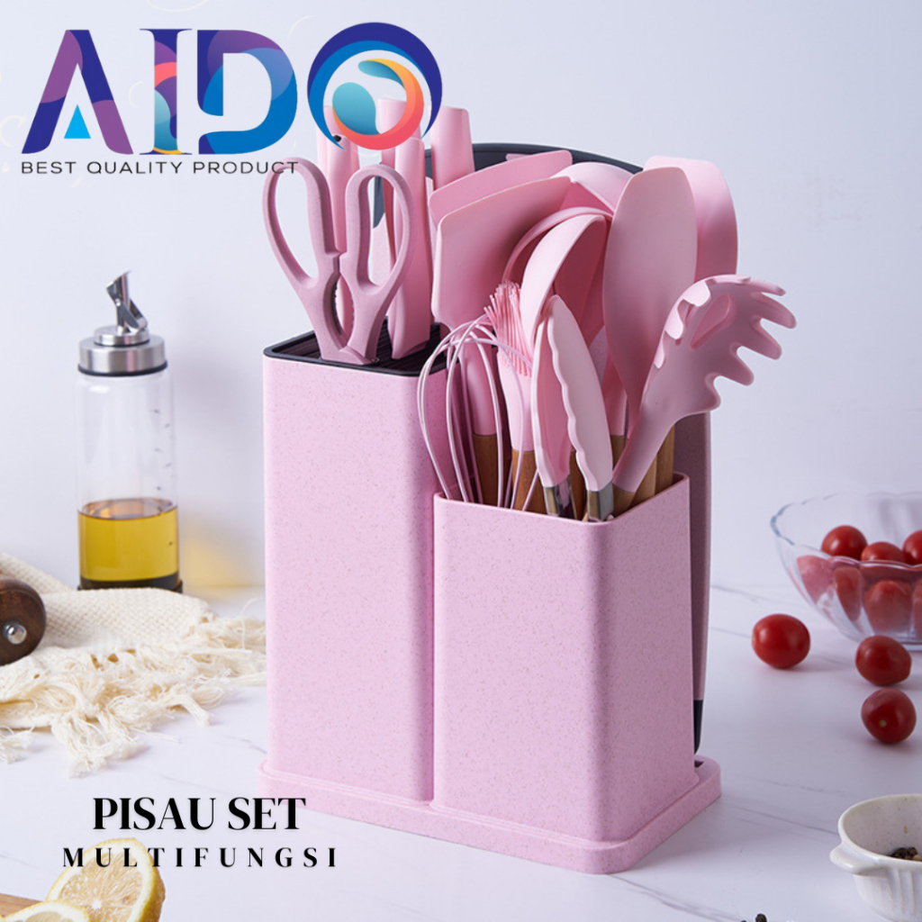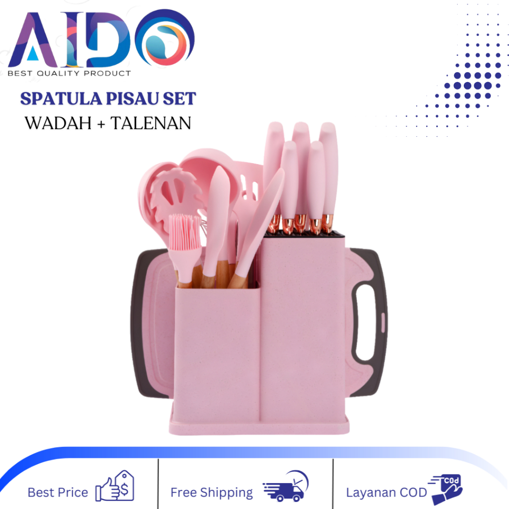 AIDO Alat Dapur Spatula set silikon & pisau set wadah talenan Kitchen Spatula Pisau Set 19 in 1