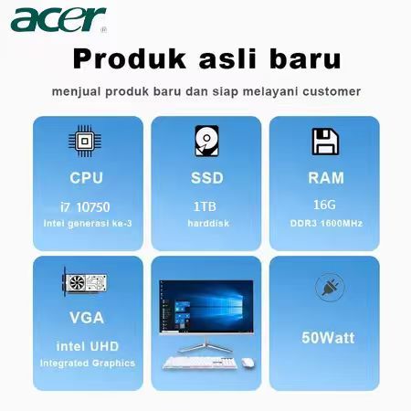 acer Komputer Full PC All-in-One 19‘ 22’ 24‘ 27“ Baru Terbaru HD Super Tipis Intel Core i3/i5/i7 Untuk Rumah, Belajar, Kantor, Gaming dan