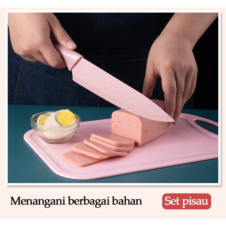 UPHOME Pisau set lengkap / Pisau Dapur Set 7 in 1 Bahan Stainless Steel / Talenan / Great Ceramic Knife Set(Warna talenan acak)