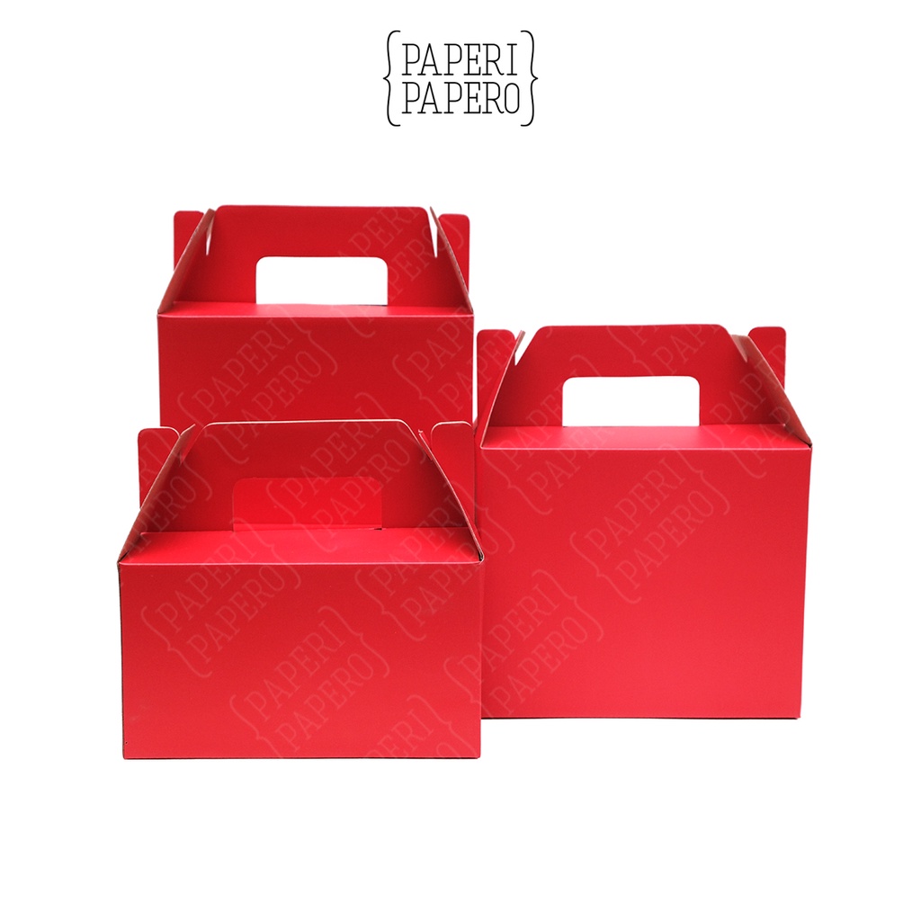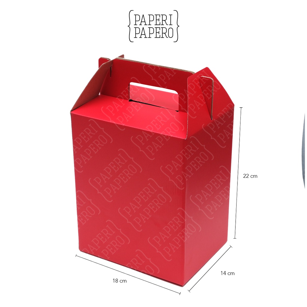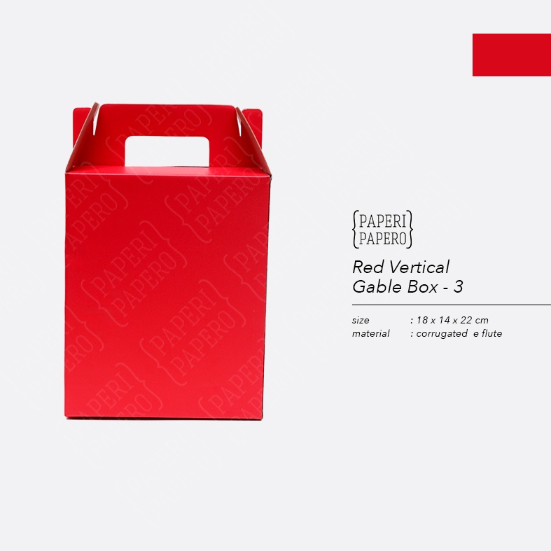 Red Vertical Gable Box 3 Kotak Kardus Hampers Merah (18 x 14 x 22 cm) - Packaging Hampers Merah Kotak Jinjing (10 Pcs)