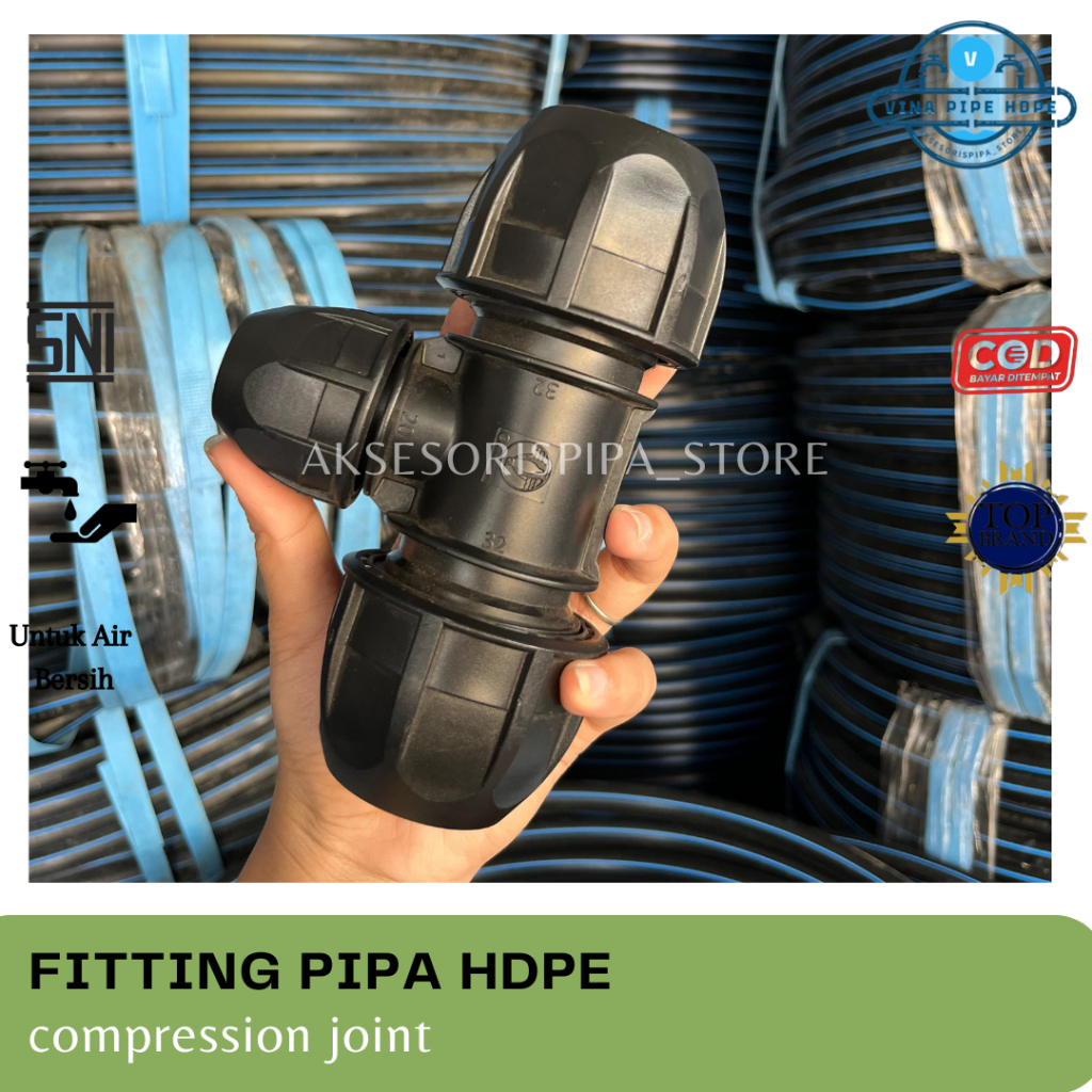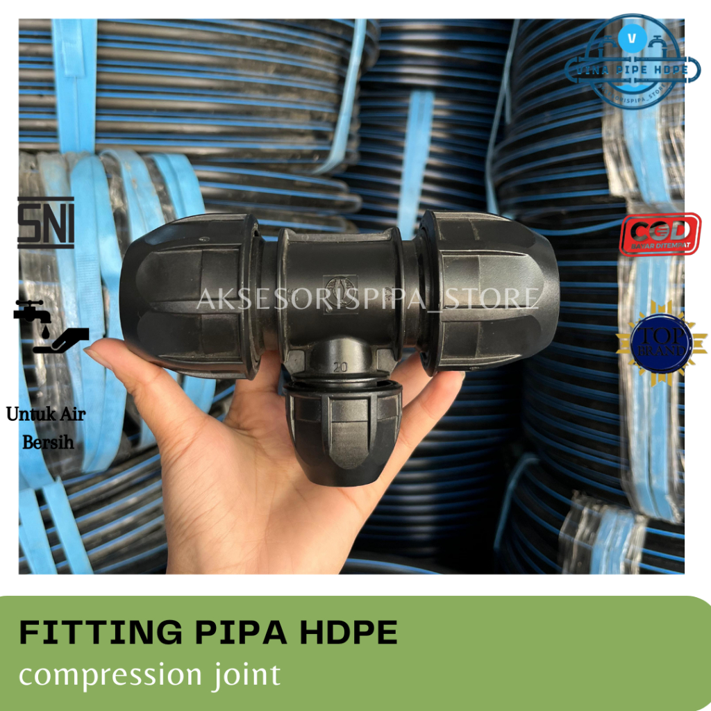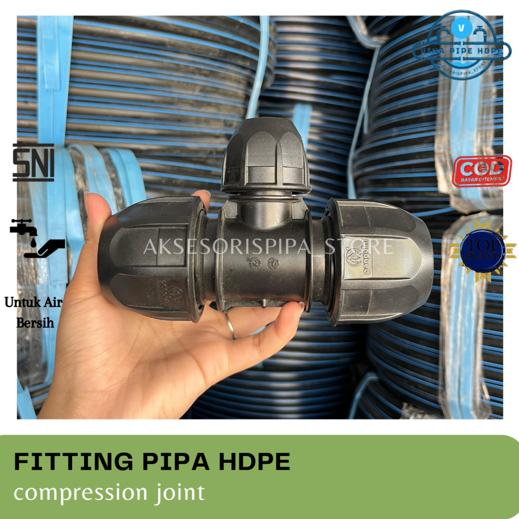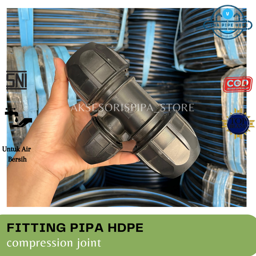 Reducer tee atau T hdpe dengan 2 ukuran berbeda 75mm x 50mm