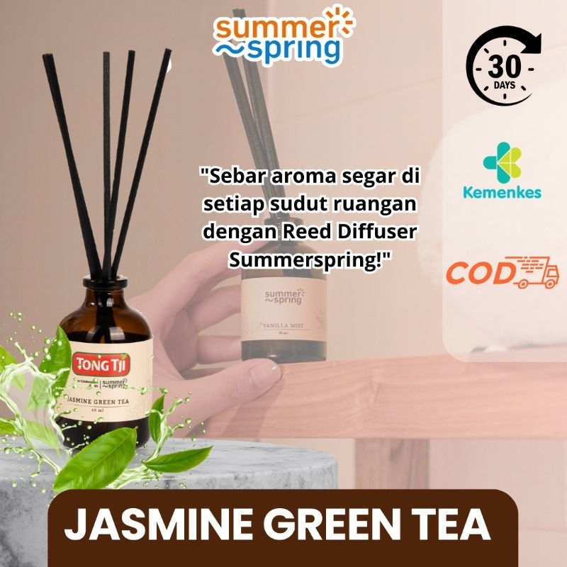 Reed Diffuser SummerSpring, Pengharum Ruangan Aroma Tong Tji/Jasmine Green Tea, Tahan Lama 40 ml
