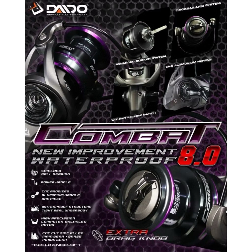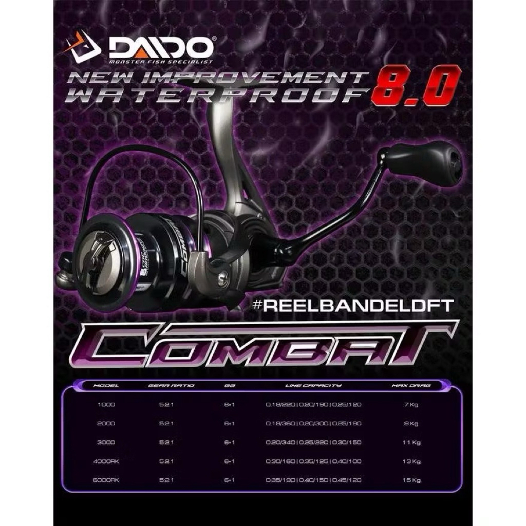 Reel Daido Combat New 8.0 Waterproof 2000-4000 Power Handle