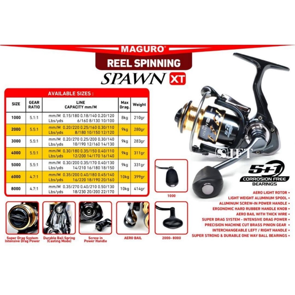 Reel Maguro SPAWN XT | Power Handle | Kolam Sungai Laut | 1000 2000 3000 4000 5000 6000 8000