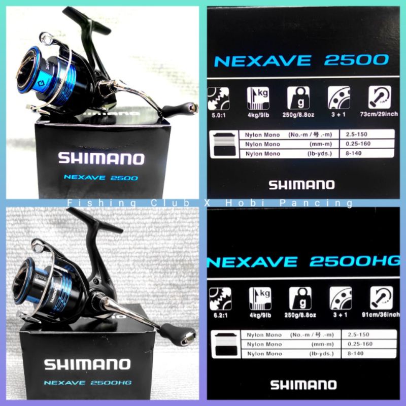 Reel pancing Shimano Nexave FG 1000 2500HG C3000 HG 4000 HG C5000 HG. Nexave 2021/ Pancing kolam laut. max drag 10kg. Galatama Lele.