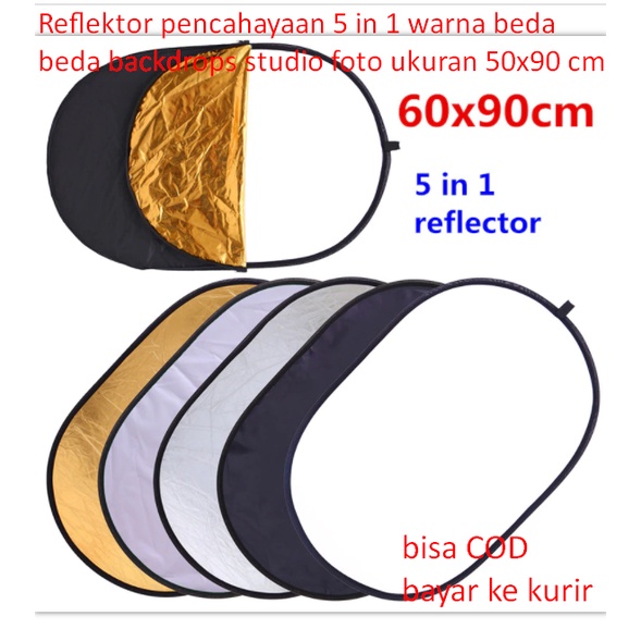 Reflektor pencahayaan 5 in 1 warna beda beda backdrops studio foto ukuran 50x90 cm