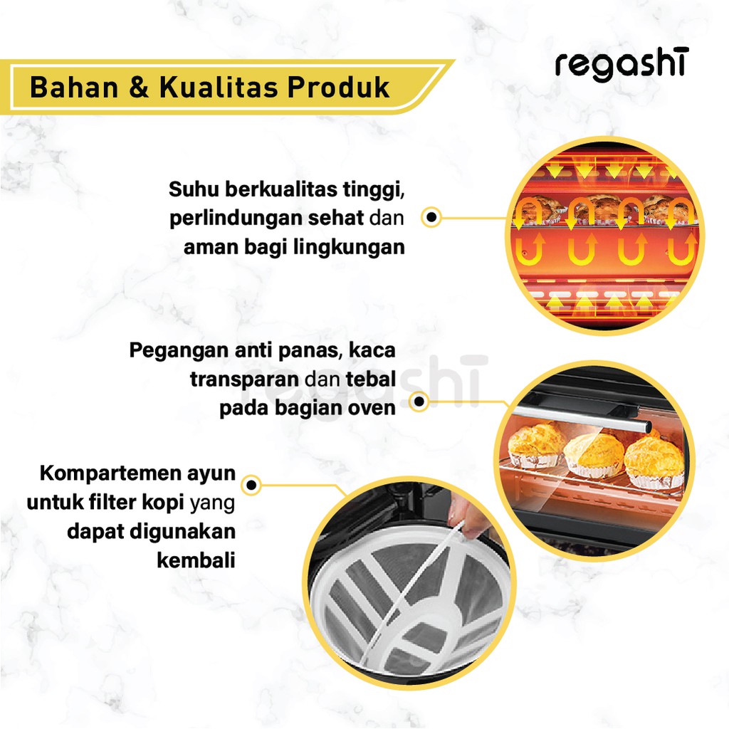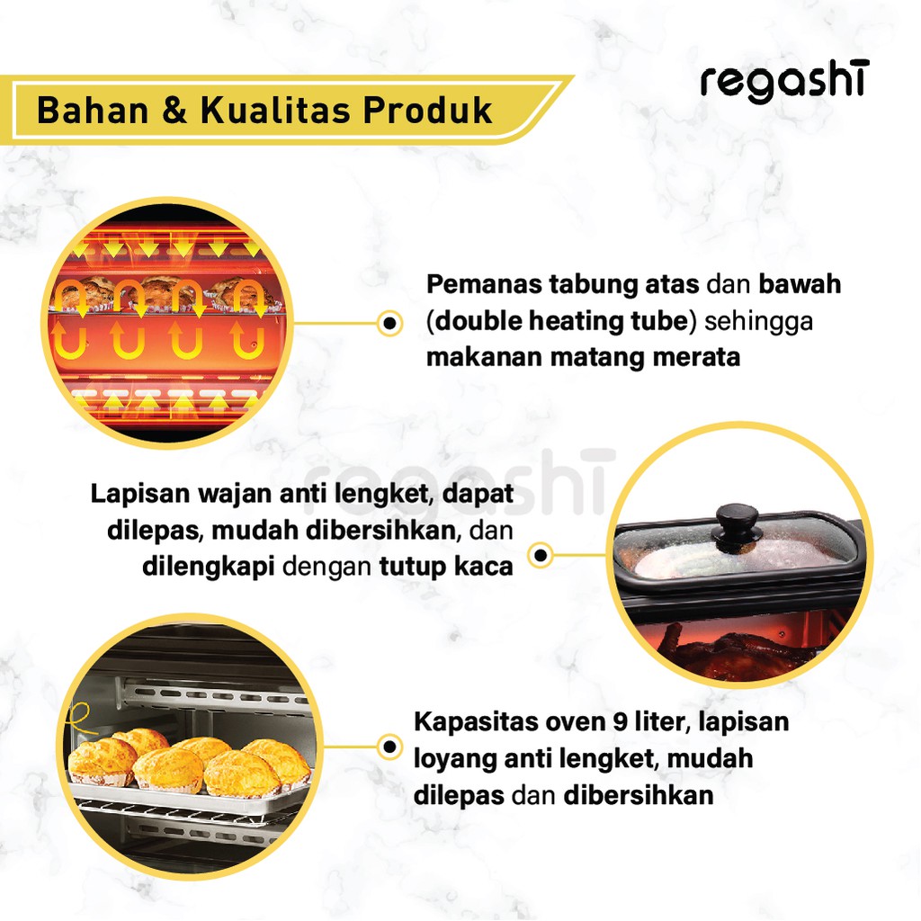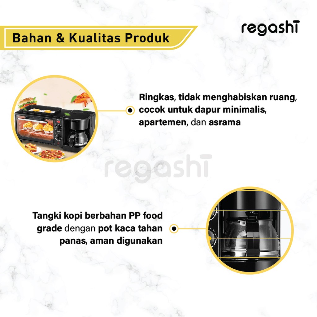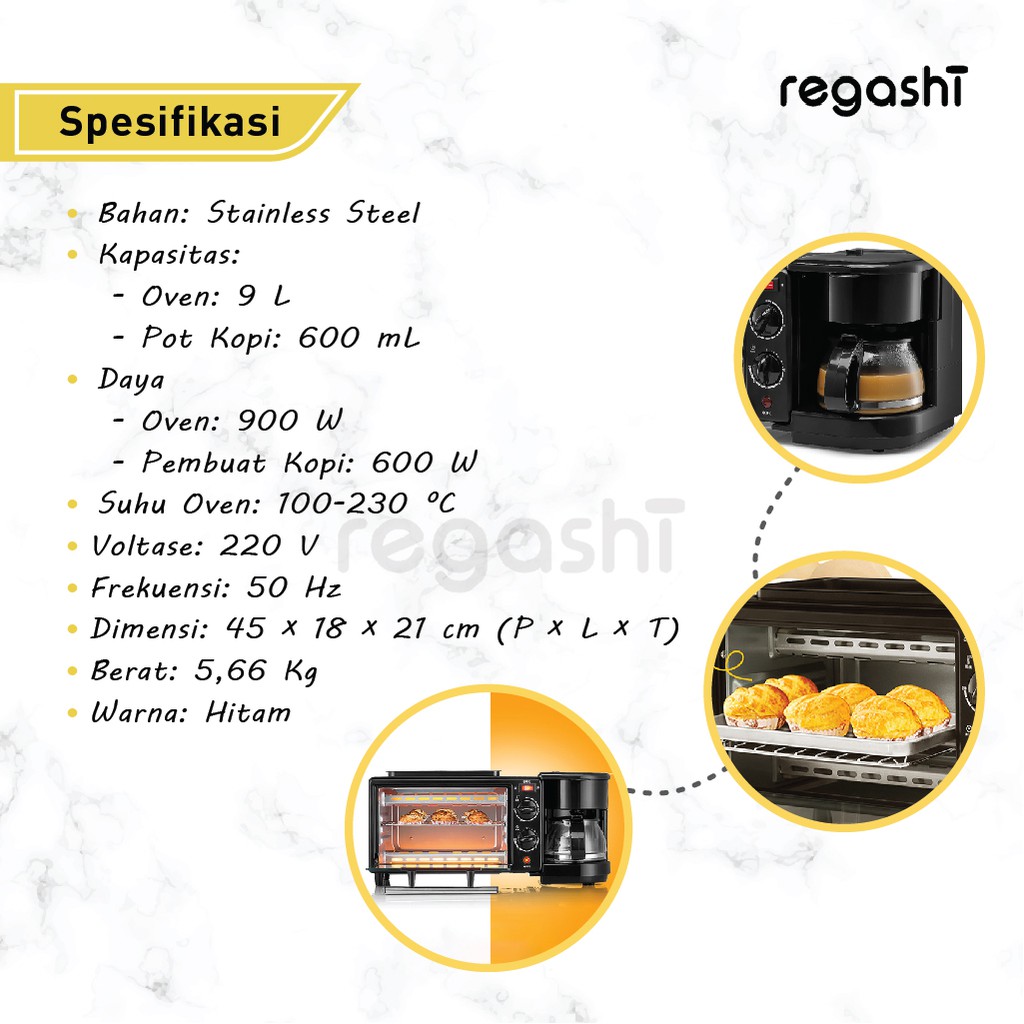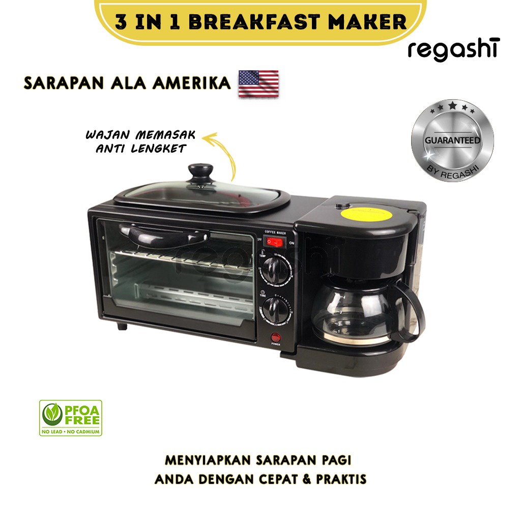 Regashi Breakfast Maker Oven Elektrik Multifungsi 3 In 1 Pemanggang Pizza Kue Roti Cake Mesin