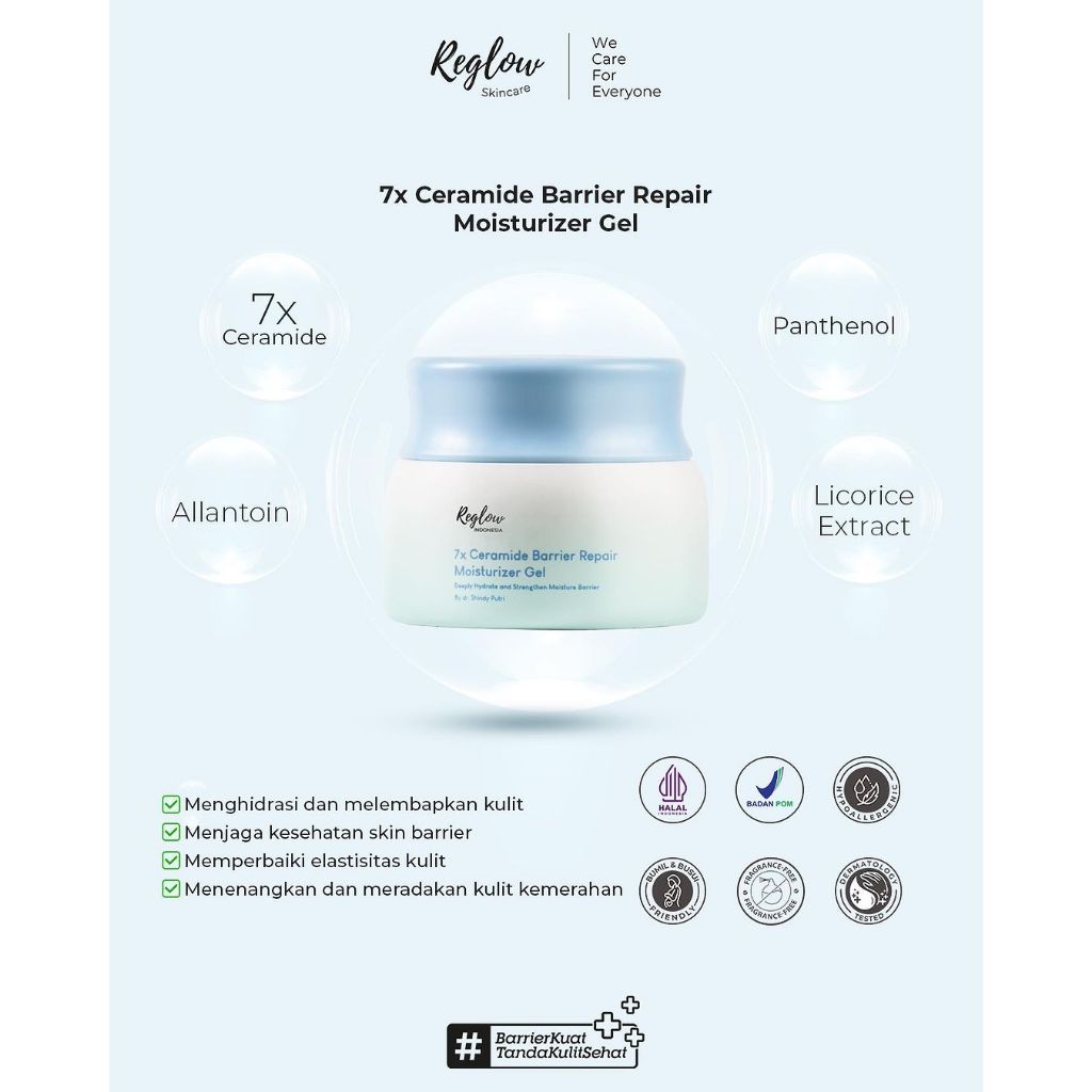 Reglow Moisturizer Gel Repair Skin Barrier 7X Ceremide Cream Pelembab Wajah Sensitif dan Kusam