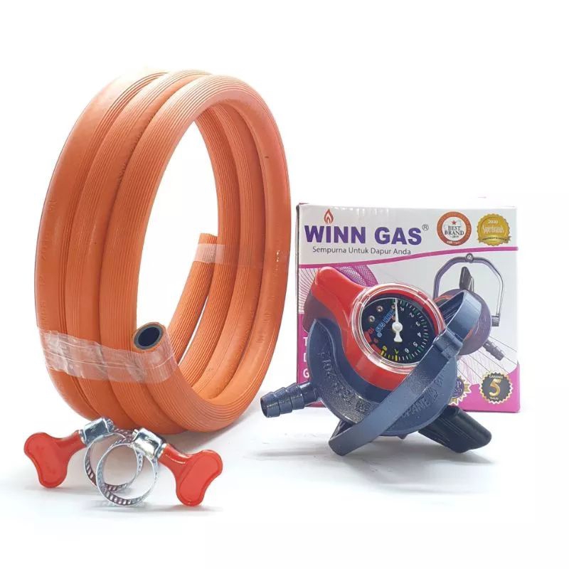 Regulator Winn Gas 900 Meter Dobel Lock+Selang 2 Lapis 2 Meter +Kleam 2 Biji