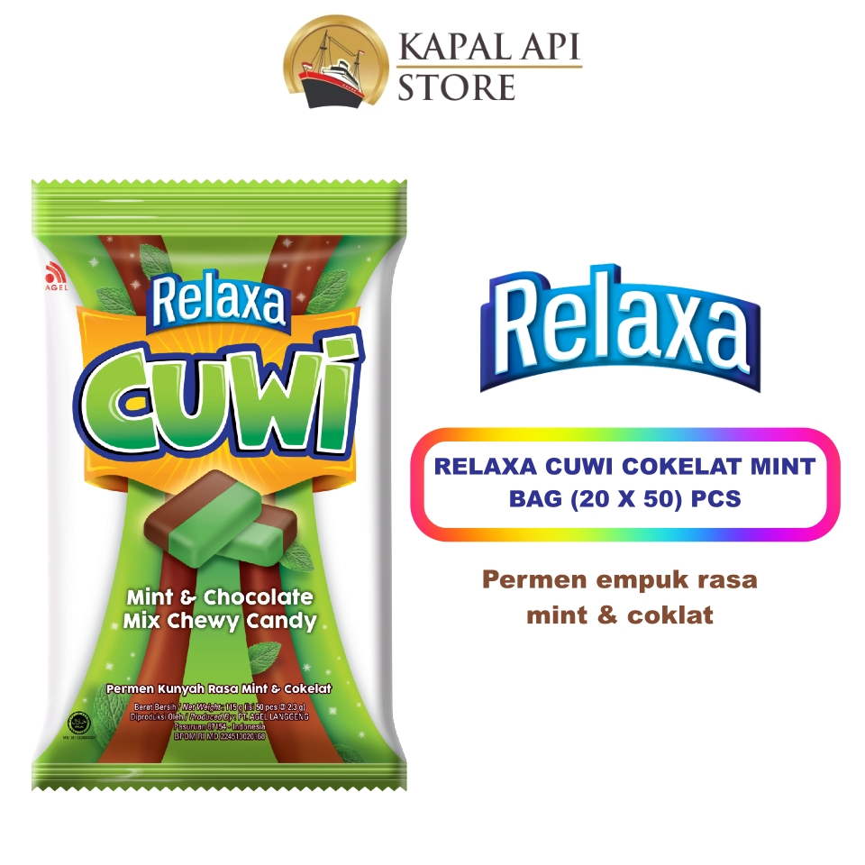Relaxa Cuwi Permen Mint Chocolate / Strawberry Milk Chewy Candy (isi 50 pcs)
