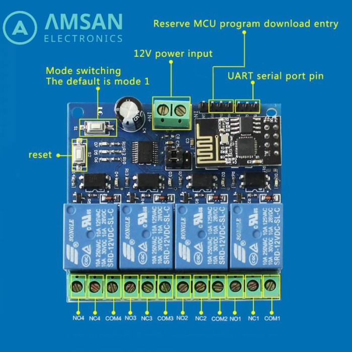Relay 4 Channel WiFi DC 12V ESP8266 ESP-01 Module For IOT Smart Home