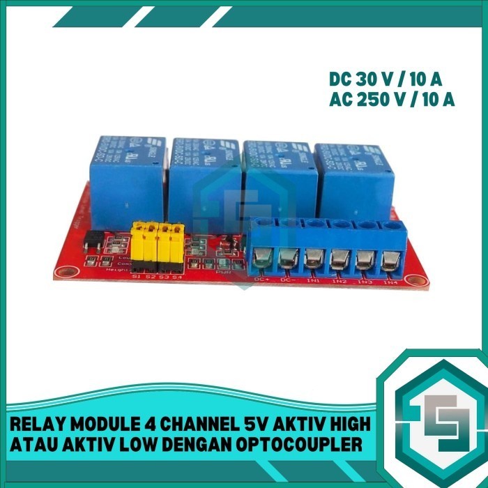 Relay Module 4 Channel 5V Aktiv High Atau Aktiv Low Dengan Optocoupler
