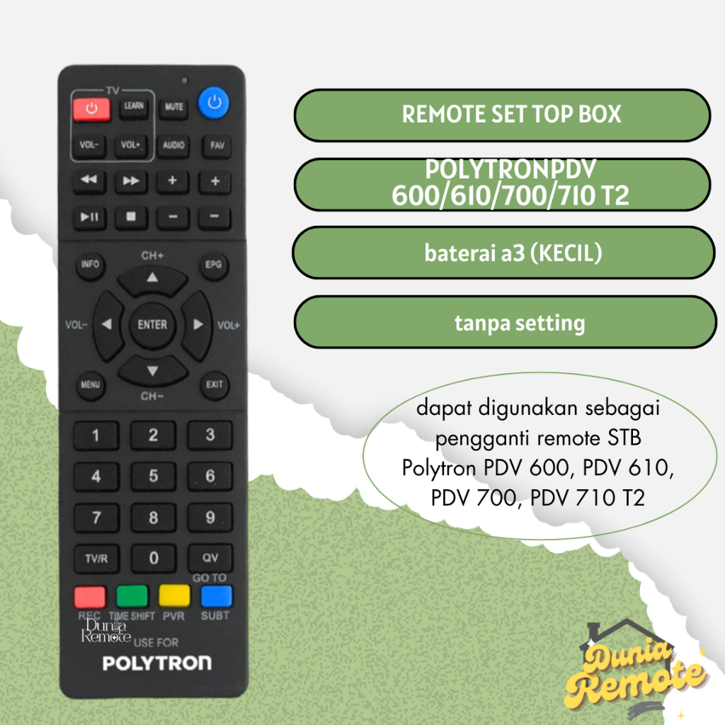 Remot Remote STB POLYTRON POLY-105 DVB T2 set top Box POLYTRON PDV 600 PDV 610