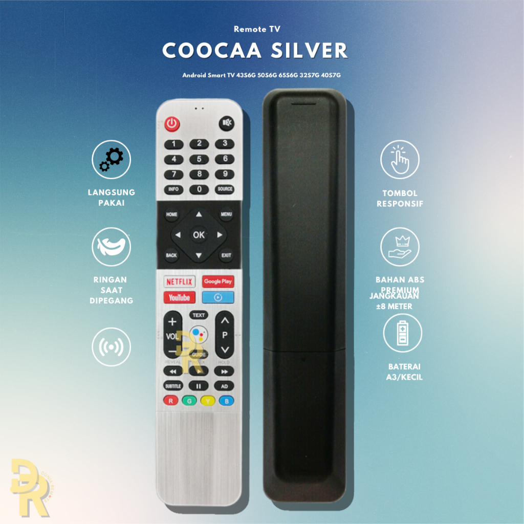 Remot Remote Smart TV LED/LCD Android Coocaa Silver tanpa dus non setting