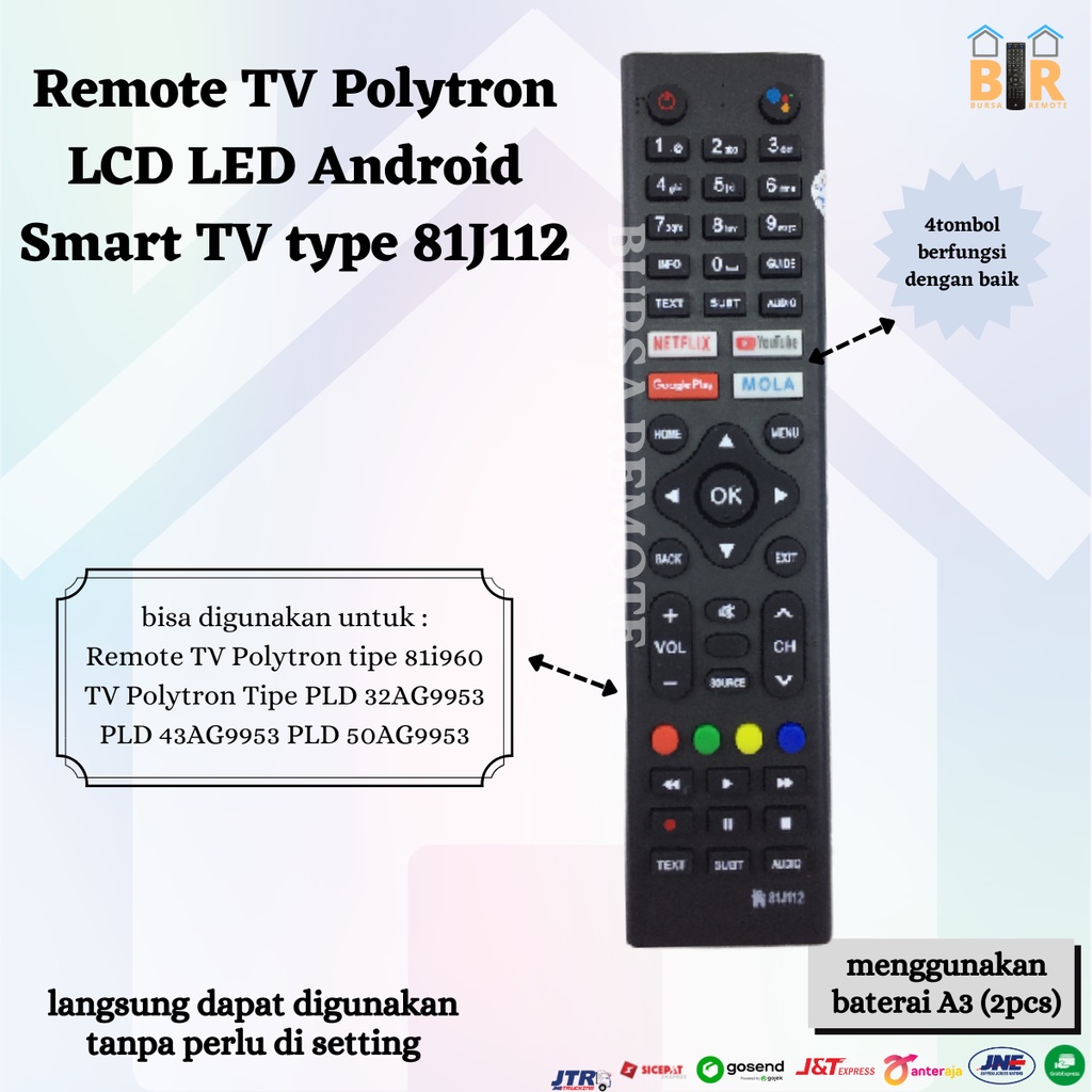 Remot / Remote Smart TV Polytron LCD LED Android type 81J112 android Smart youtube netflix mola tv