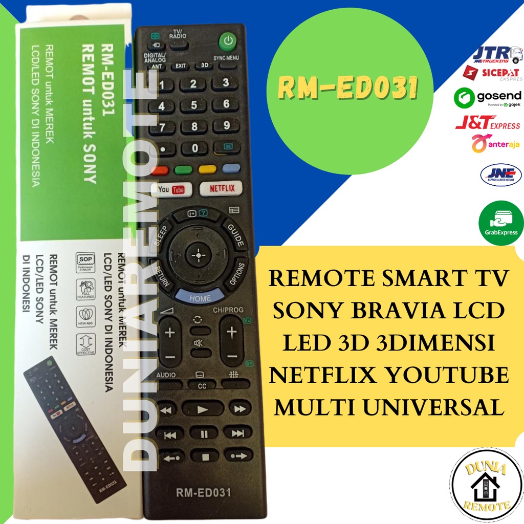 Remot Remote TV SONY BRAVIA RM-ED031 Smart Multi Android TV LCD LED 3D Netflik Youtube