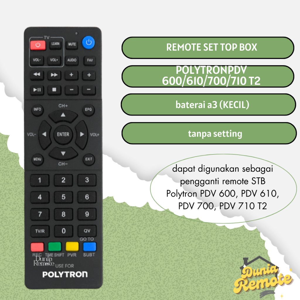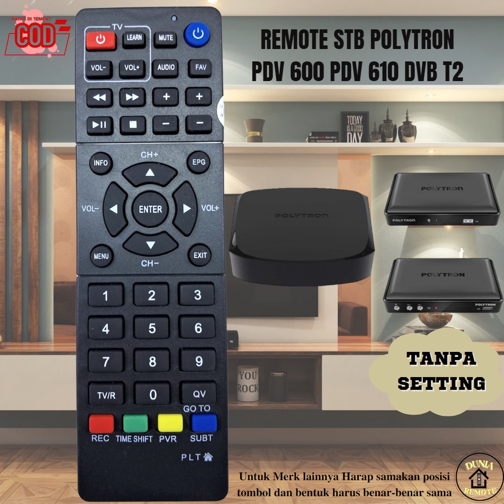 Remot Remote set top box Polytron PDV600 PLT Stb Dvb T2 tanpa setting
