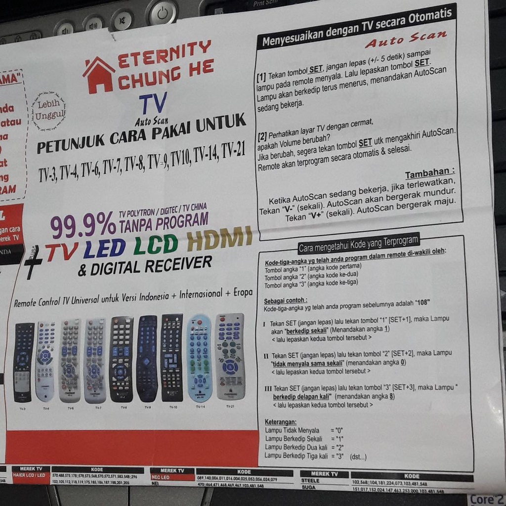 Remot TV untuk semua merek /layar Tabung/LCD LED/Ada buku settingnya Universal