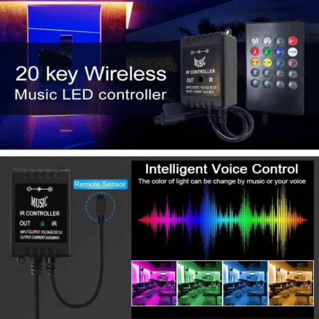 Remote + Controller Sensor Suara Music Driver Lampu led strip RGB 5050 3528 Warna Warni musik