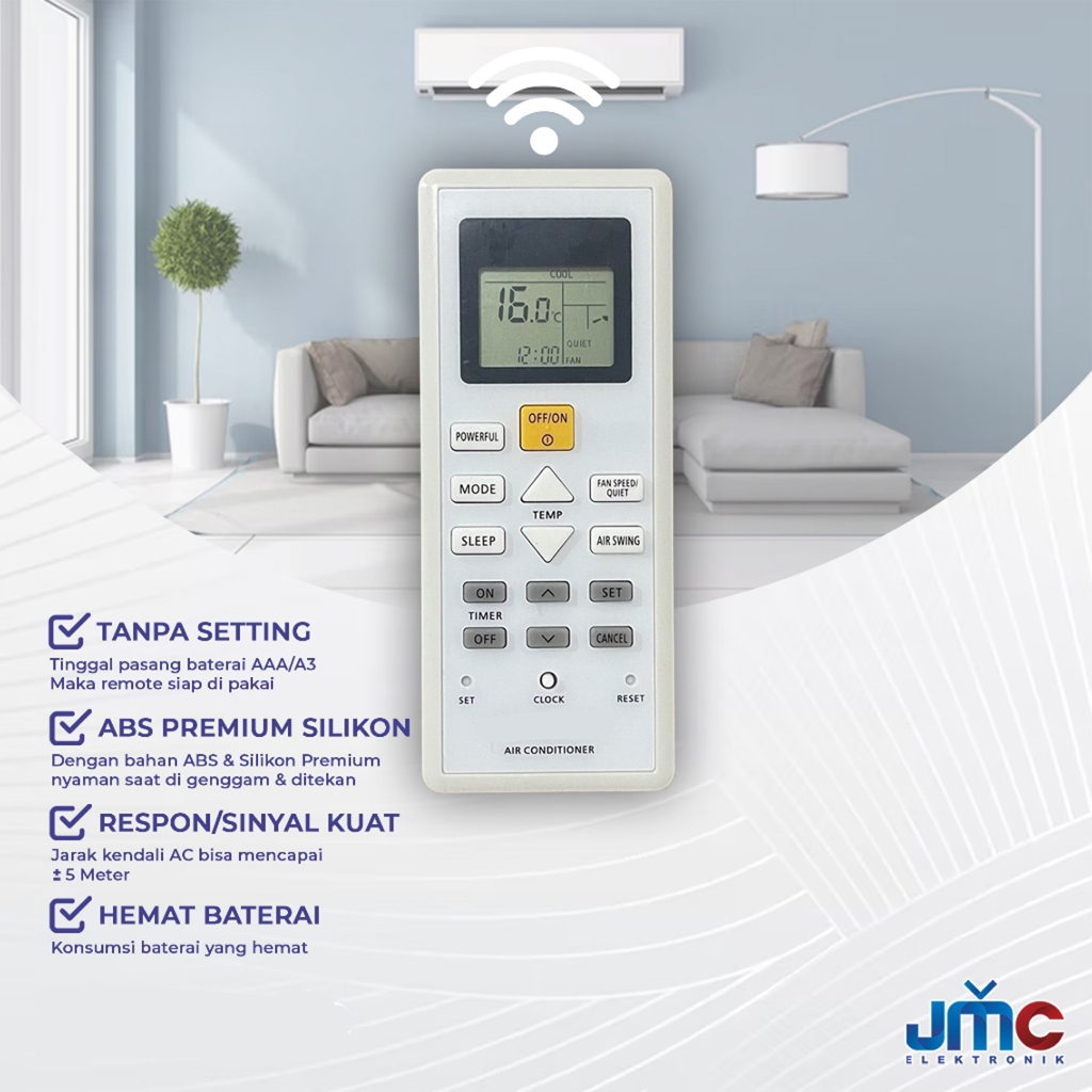 Varian Remote AC JMC Pengganti Remot AC PANASONIC 19210 19190 4543 07700 CS-YN5WKJ CS-YN7WKJ CS-C7PKP CS-PN7WKJ CS-PN5WKJ