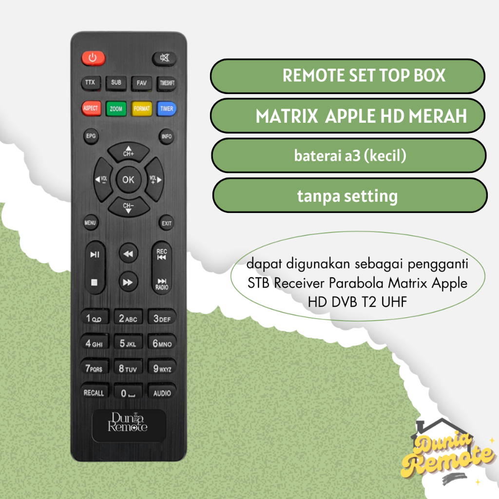 Remote Stb Matrix Apple Merah Hd DVB T2 Receiver Parabola Matrix Apple HD DVB T2 UHF Set Top Box