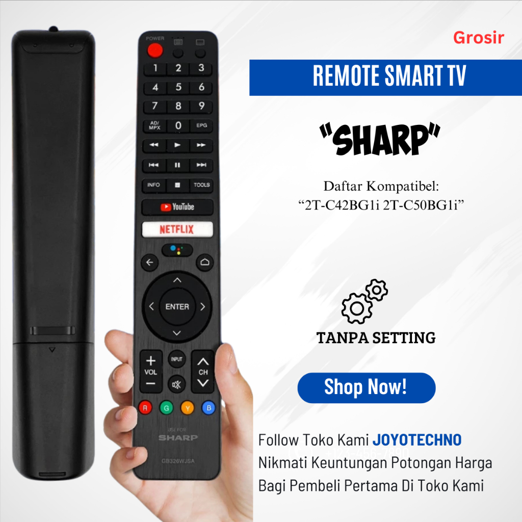 Remote TV Sharp Type 2T-C32BG1i 2T-C42BG1i GB326WJSA Kualitas Original SMART LED ANDROID Non Voice