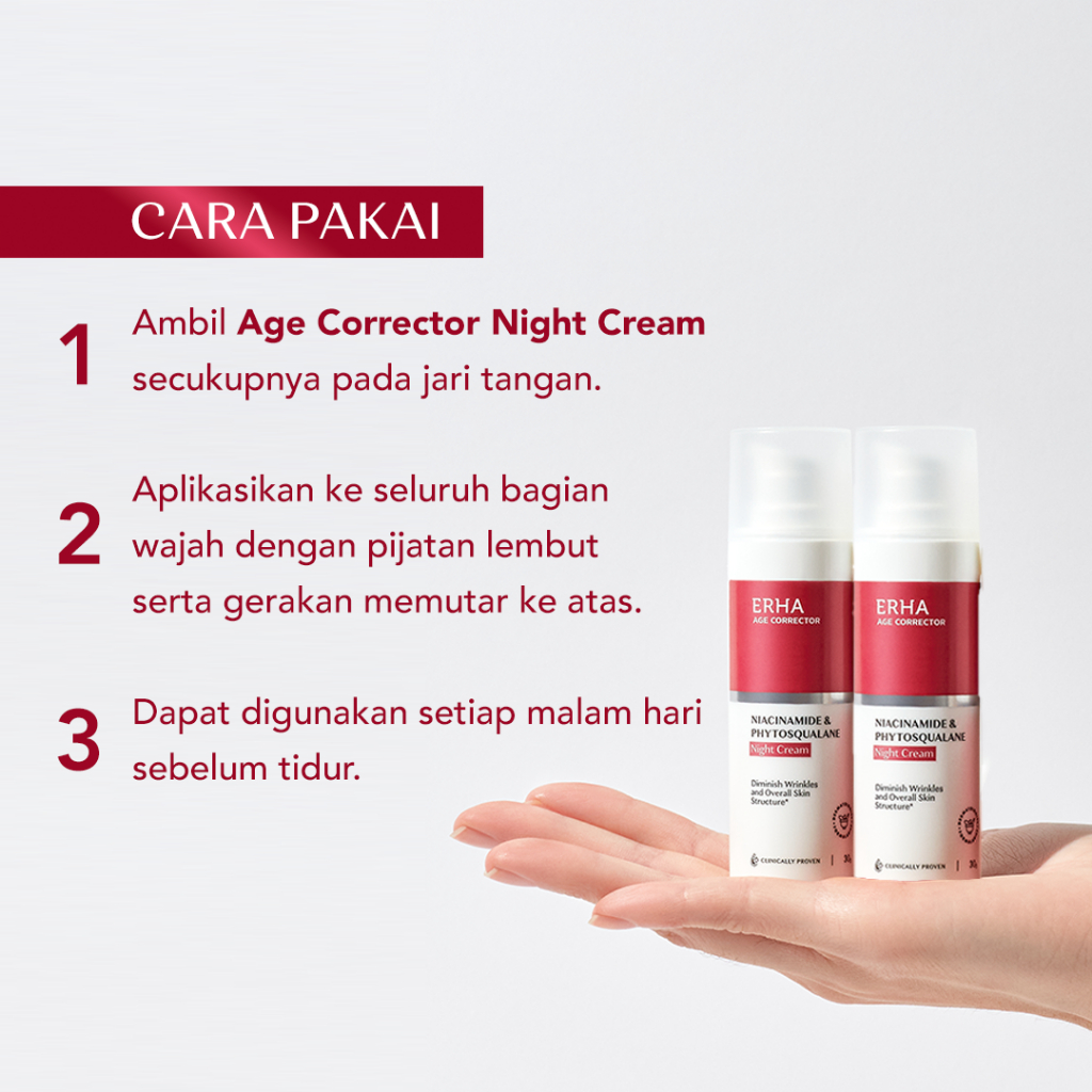 ERHA Age Corrector Niacinamide & Phytosqualane Night Cream 30g - Krim Malam Anti Aging | Melembabkan | Meremajakan Kulit | Meratakan Warna Kulit | Samarkan Garis Halus Keriput Kerutan | Moisturizer | Anti Penuaan | Pelembab