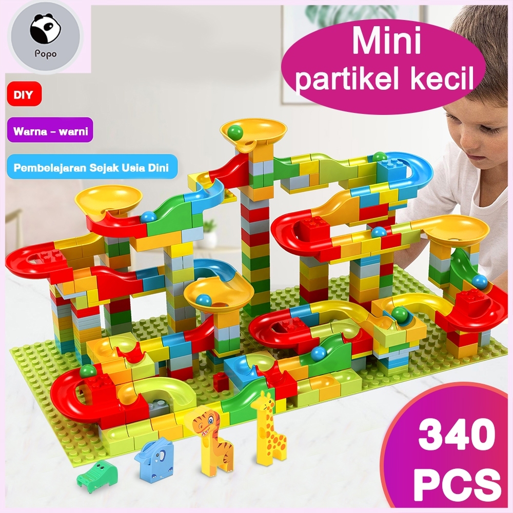 POPO 340pcs Mainan Anak Brick Building Balok Mini Susun Track Slide Ball Marble Race Run Maze Block Track Slide Ball Edukasi Anak