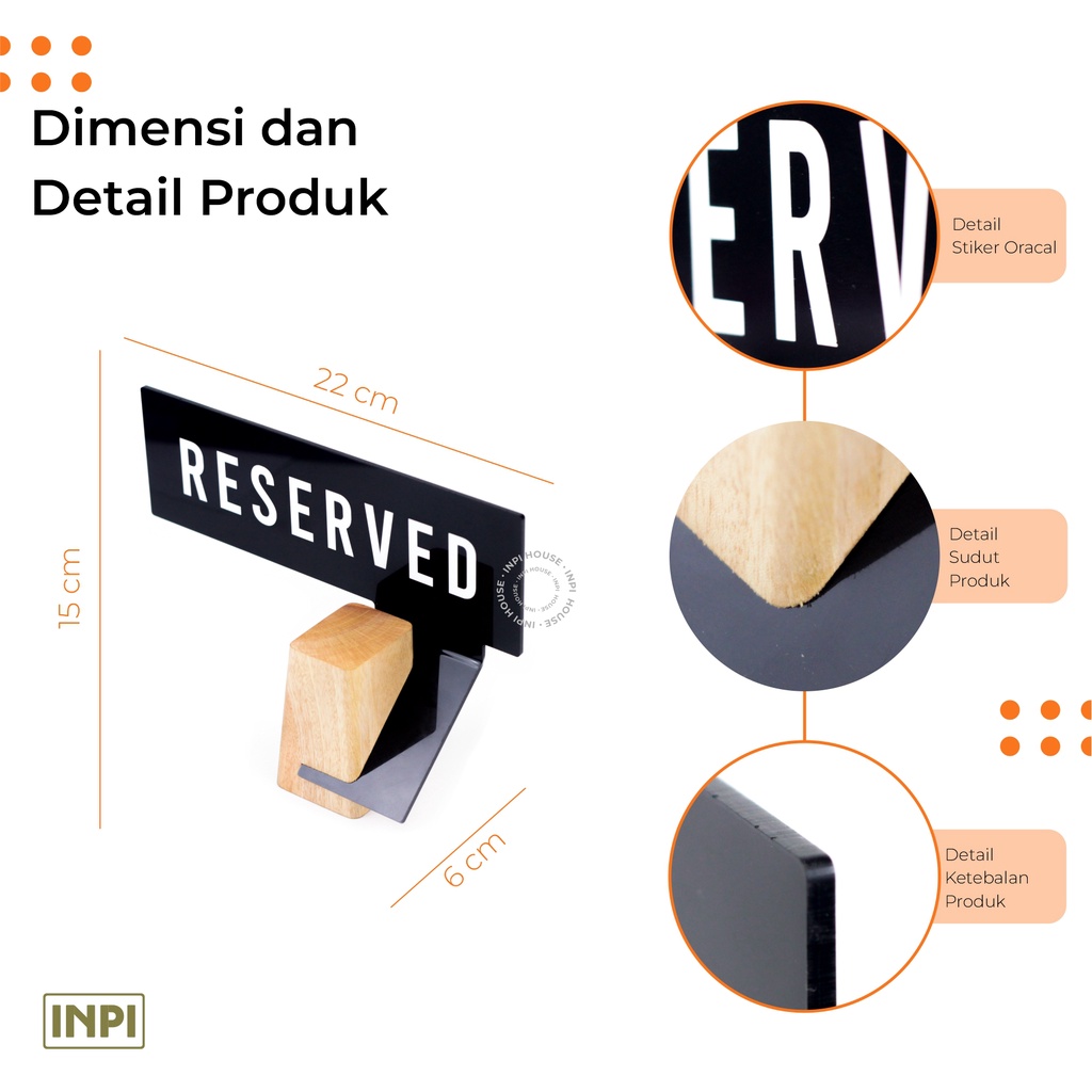 INPI HOUSE Signage Reserved - Papan Tanda Meja Reserved - Meja Restaurant - Kayu + Akrilik
