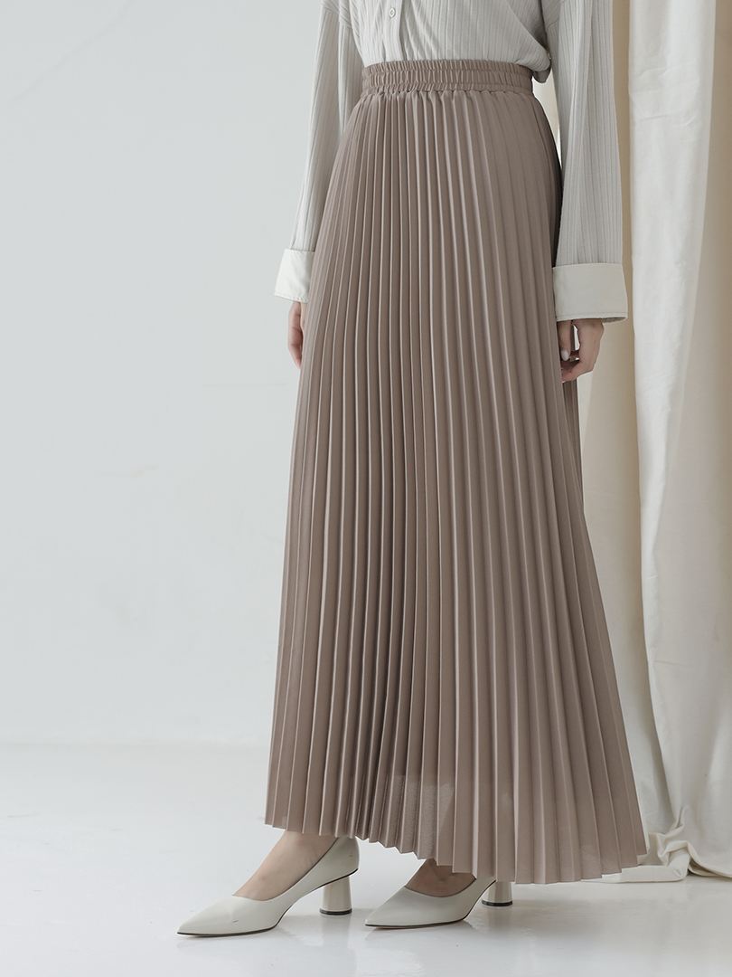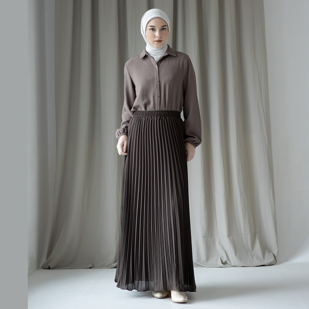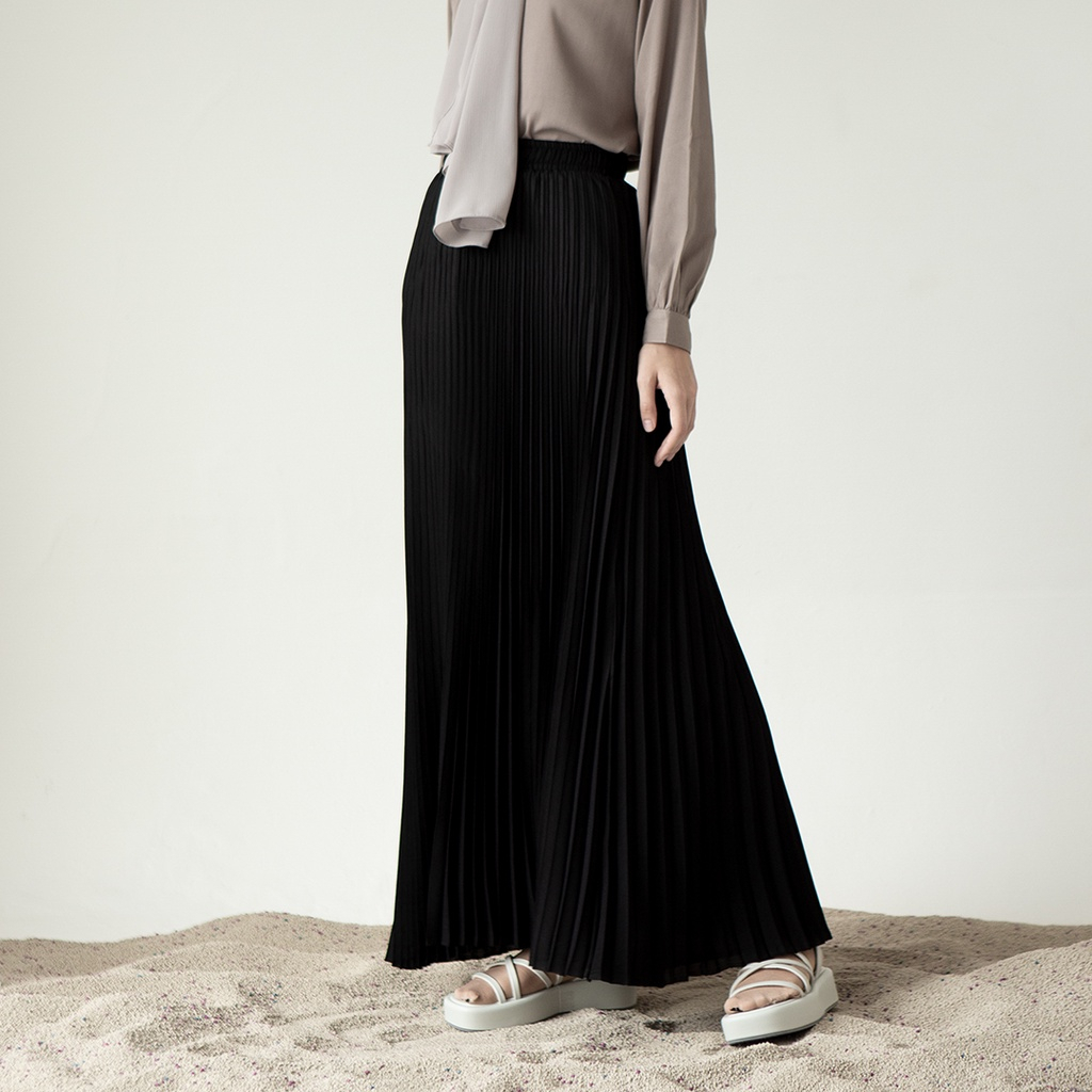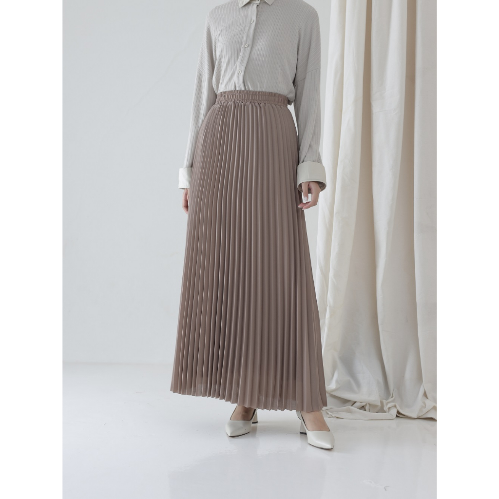 Reska Skirt by Aska Label - Rok wanita pleats rok plisket pinggang full karet warna pink mauve, abu tua dark grey, hitam black