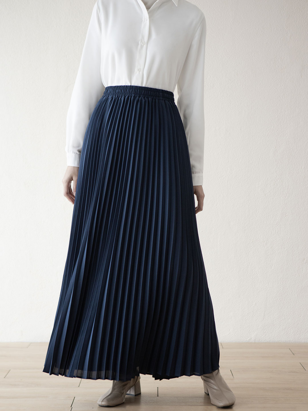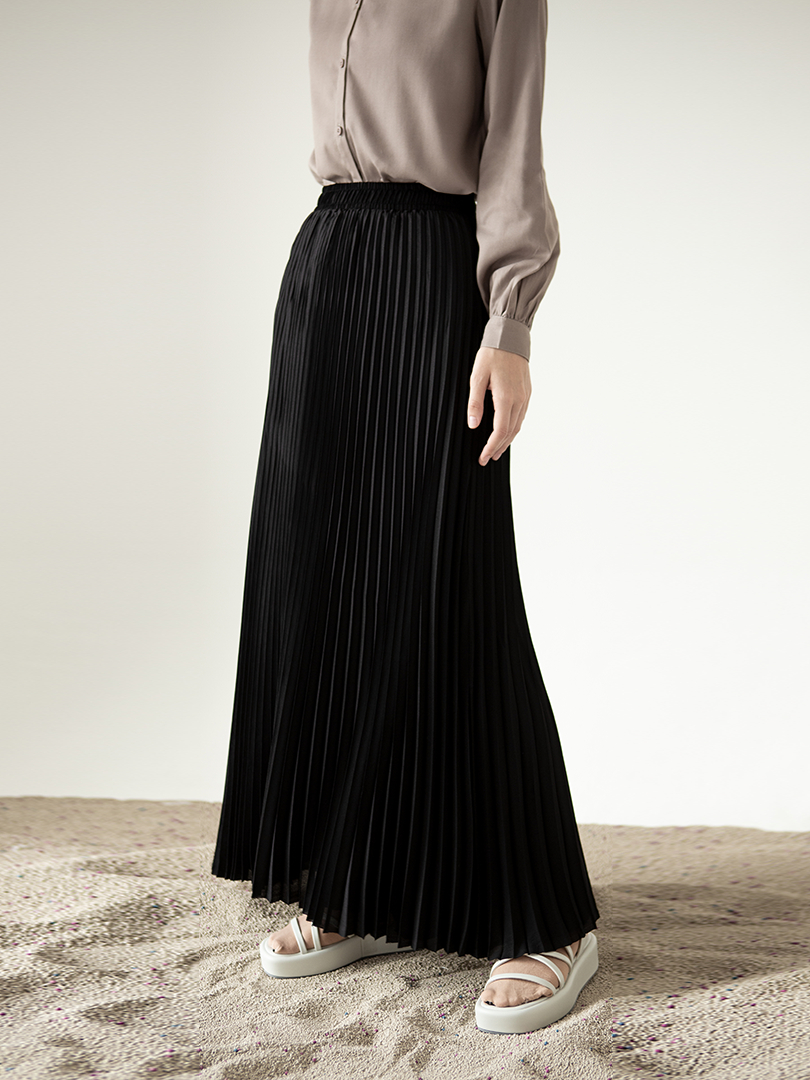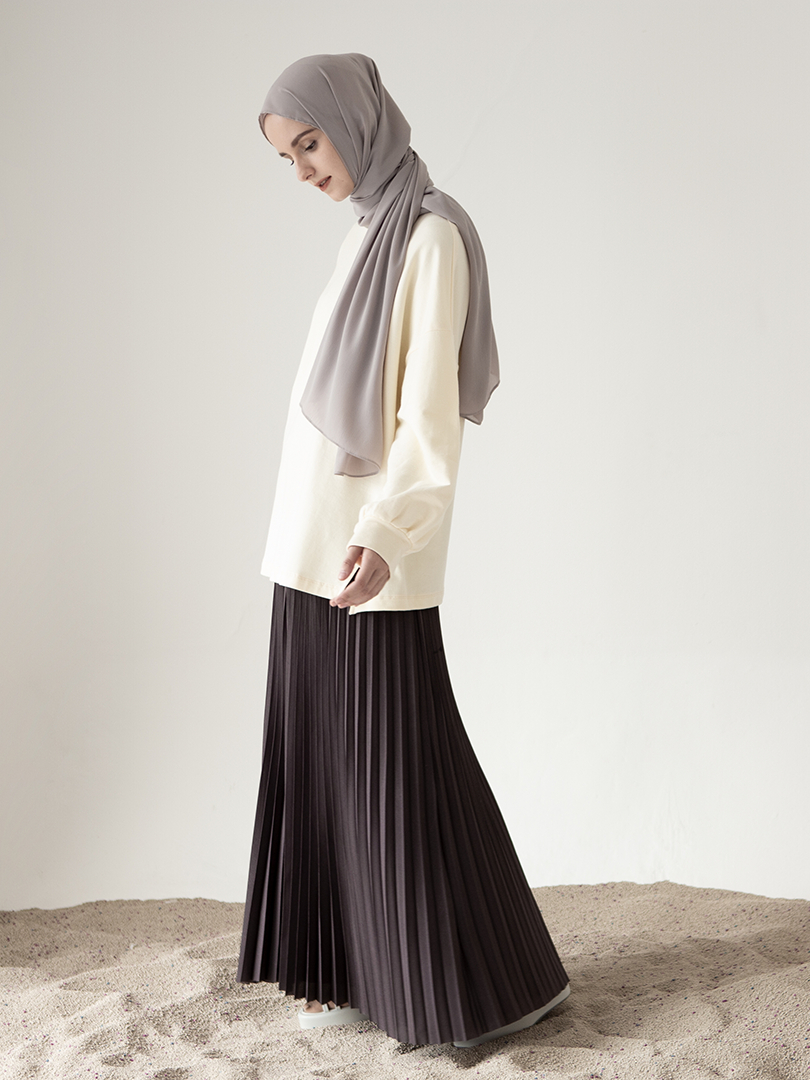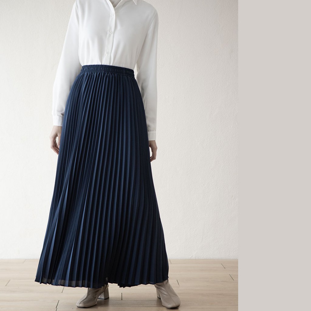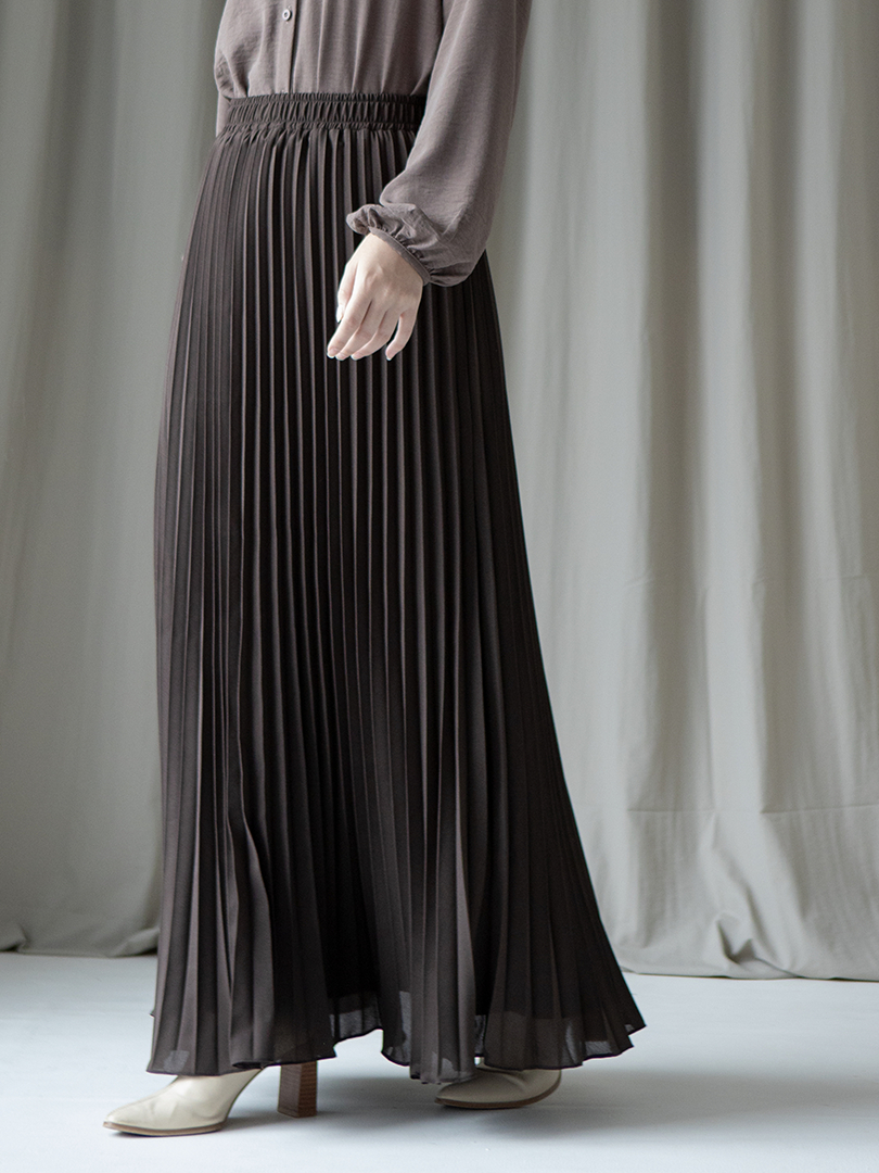 Reska Skirt by Aska Label - Rok wanita pleats rok plisket pinggang full karet warna pink mauve, abu tua dark grey, hitam black