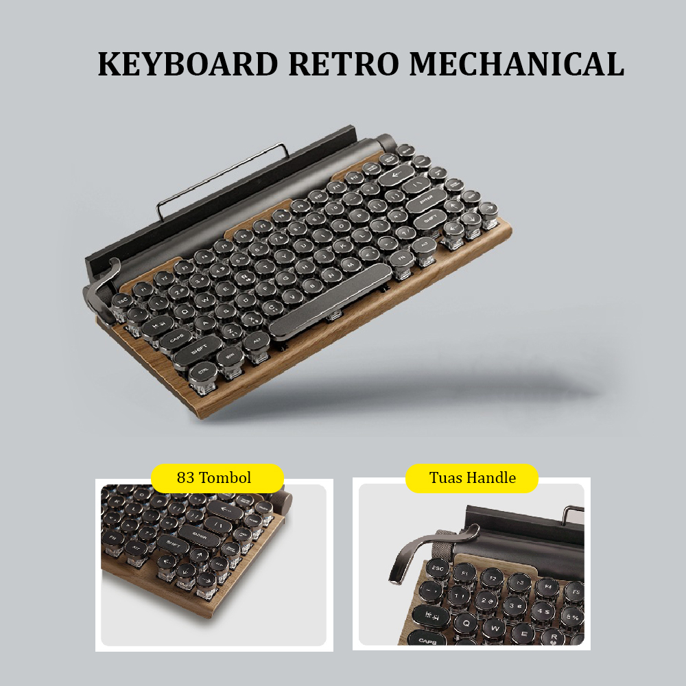 Keyboard Retro Mechanical Bluetooth | Vintage Typewriter Classic | Keyboard Design Mesin Tik Klasik