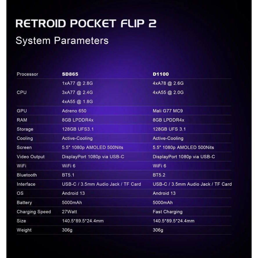 Retroid Pocket Flip 2 Handheld Retro Video Game Console Android OS 8GB / 128GB SD865 Portable Game