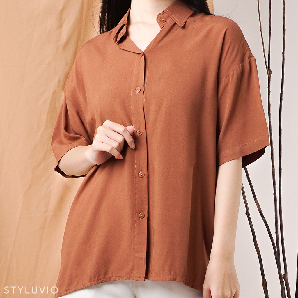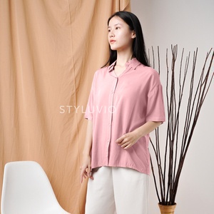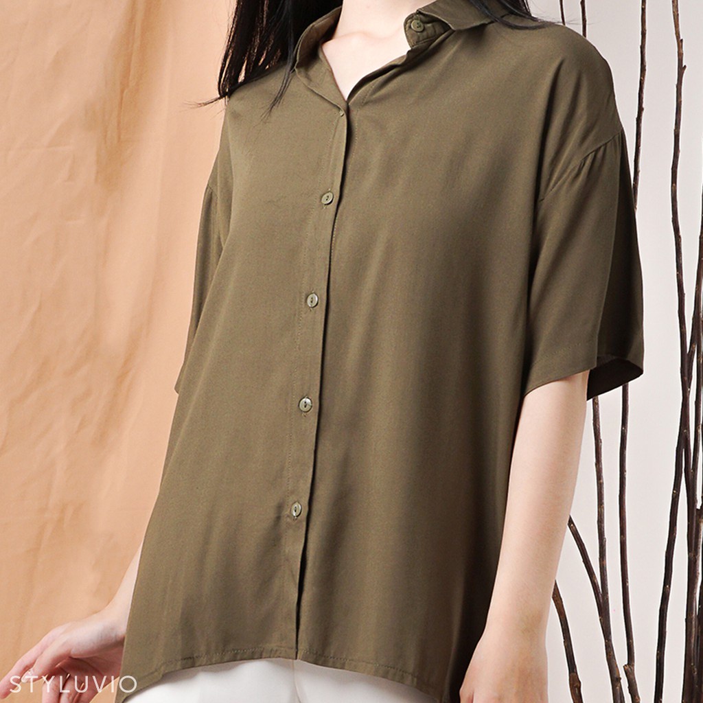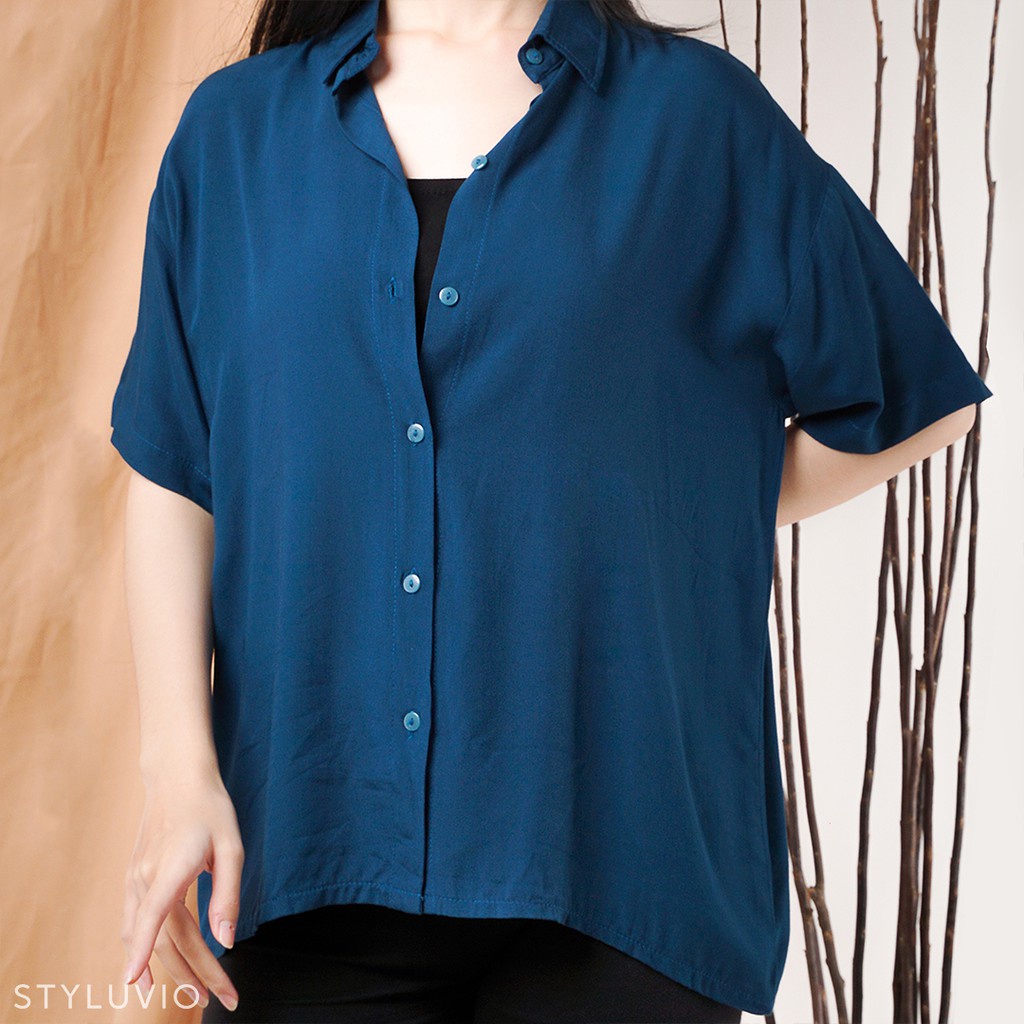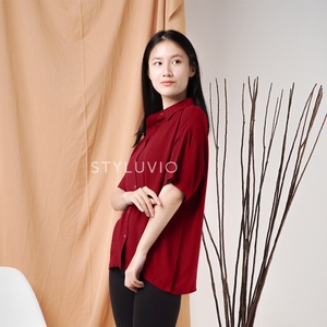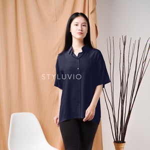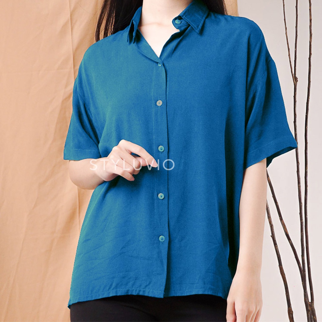 REVA Oversized Top Kemeja Rayon Lengan Pendek Full Kancing / Kemeja Kerja Kuliah Oversize Rayon Formal Casual