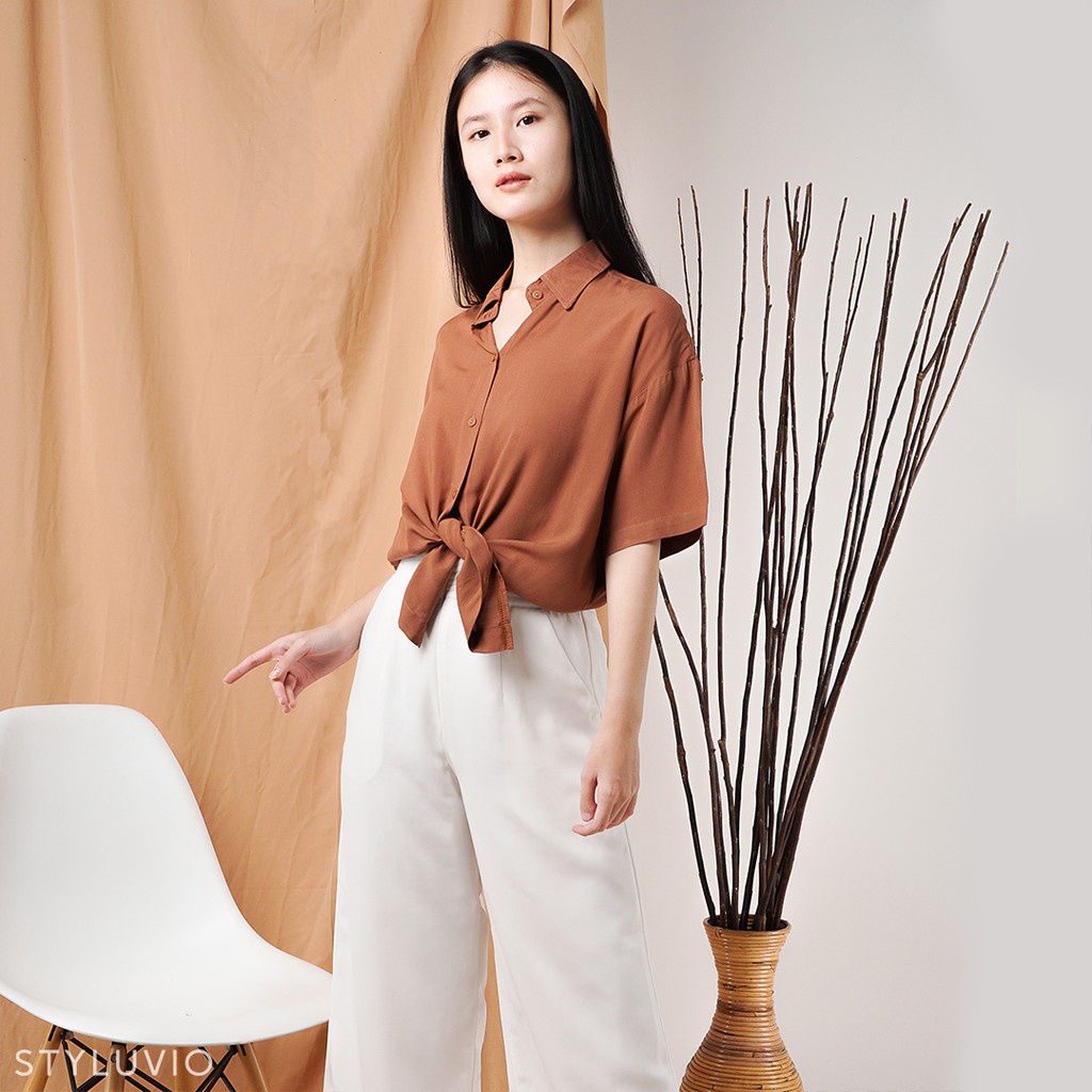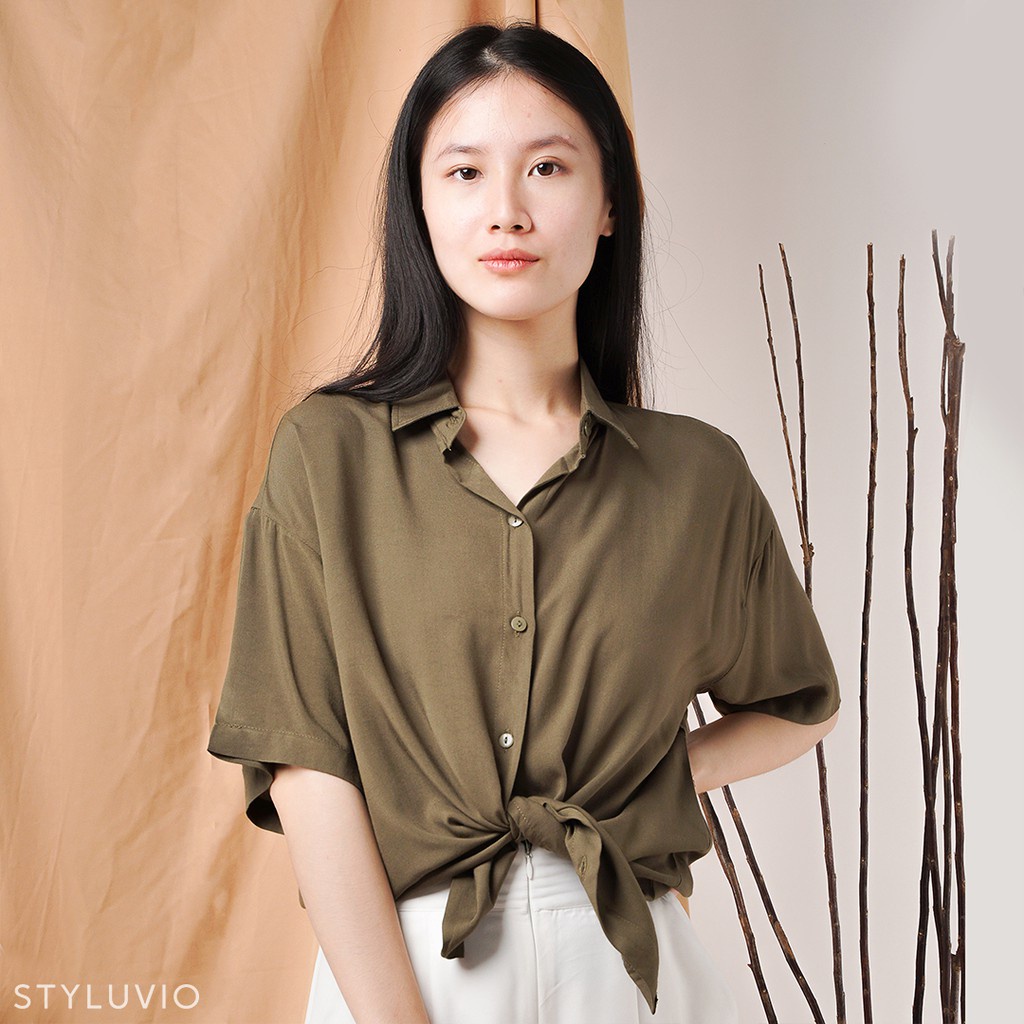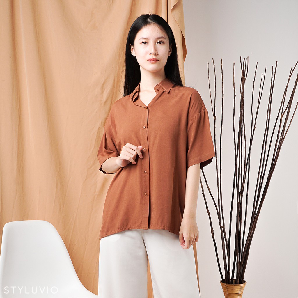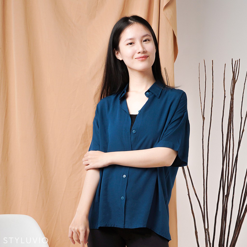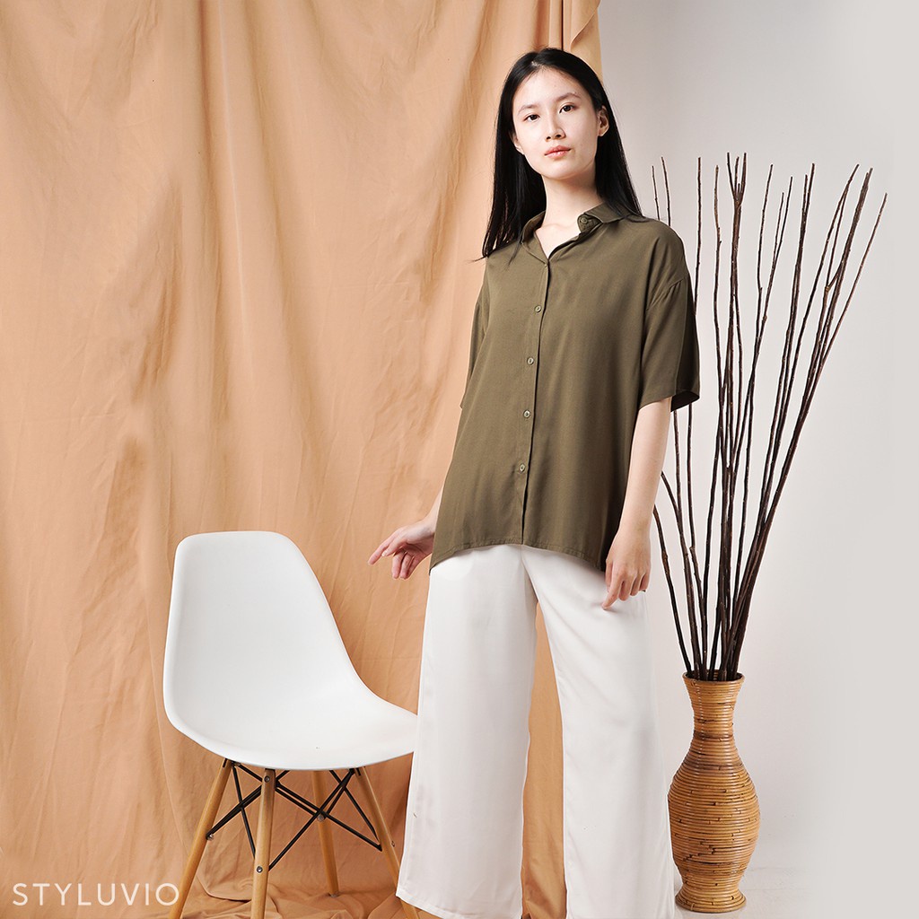 REVA Oversized Top Kemeja Rayon Lengan Pendek Full Kancing / Kemeja Kerja Kuliah Oversize Rayon Formal Casual