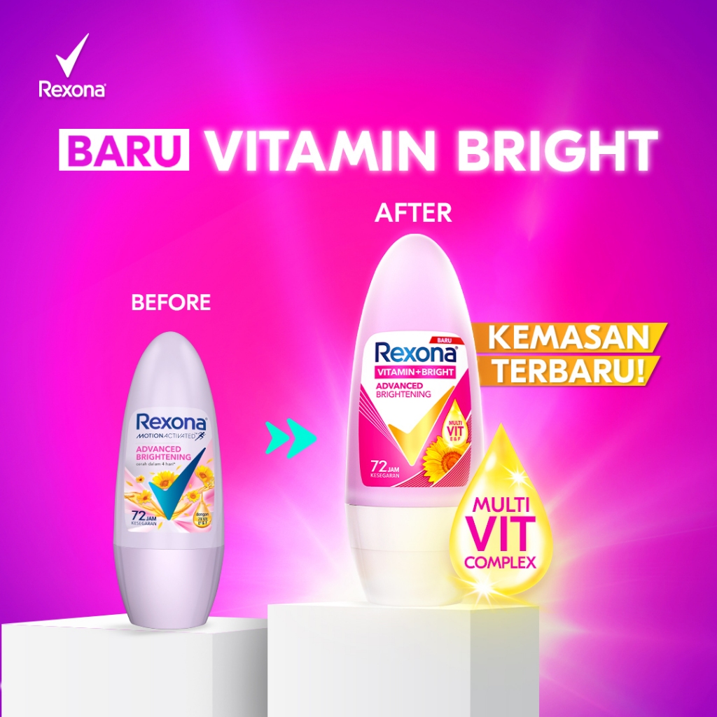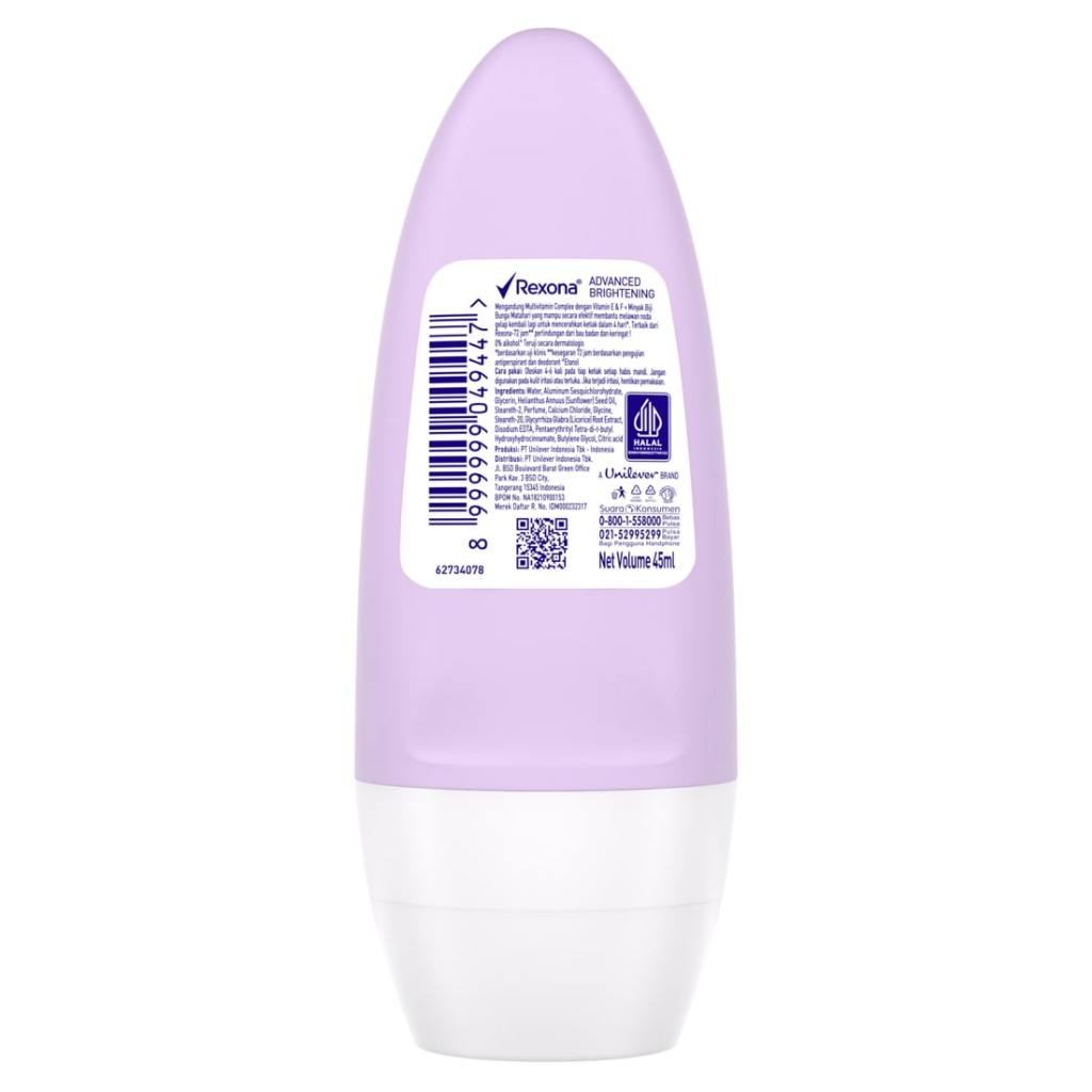 Rexona Women Deodorant Roll On Penghilang Bau Badan Advanced Brightening 45Ml