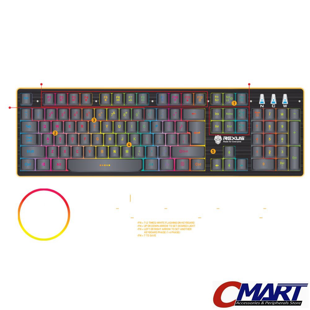 Rexus K9 RGB Fortress Backlit Floating Keys Gaming Keyboard REX-K9RGB