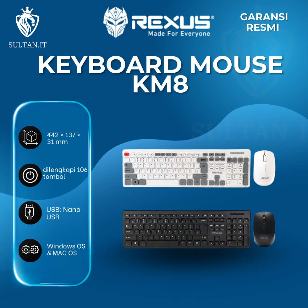 KM8 Rexus Wireless Combo Keyboard Mouse Original Desain Modern