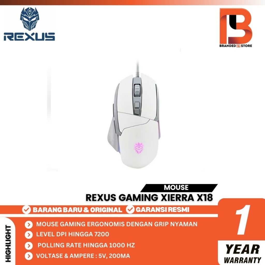 Rexus X18 / X-18 Rifle Ergonomic Gaming Wired Mouse RGB - Hitam & Putih