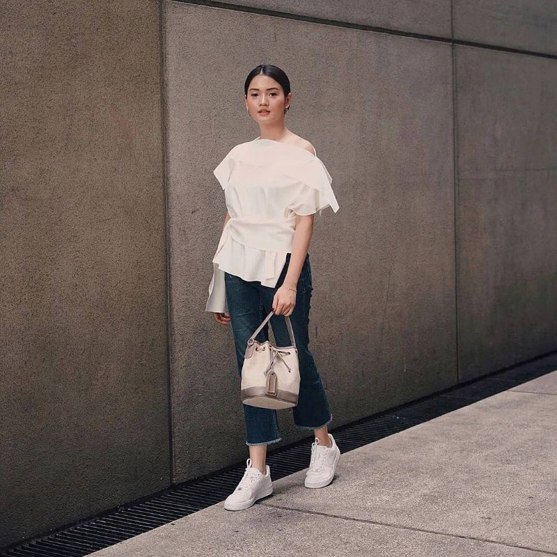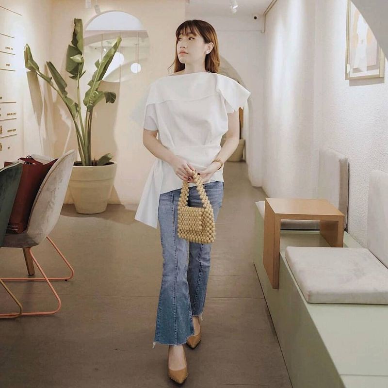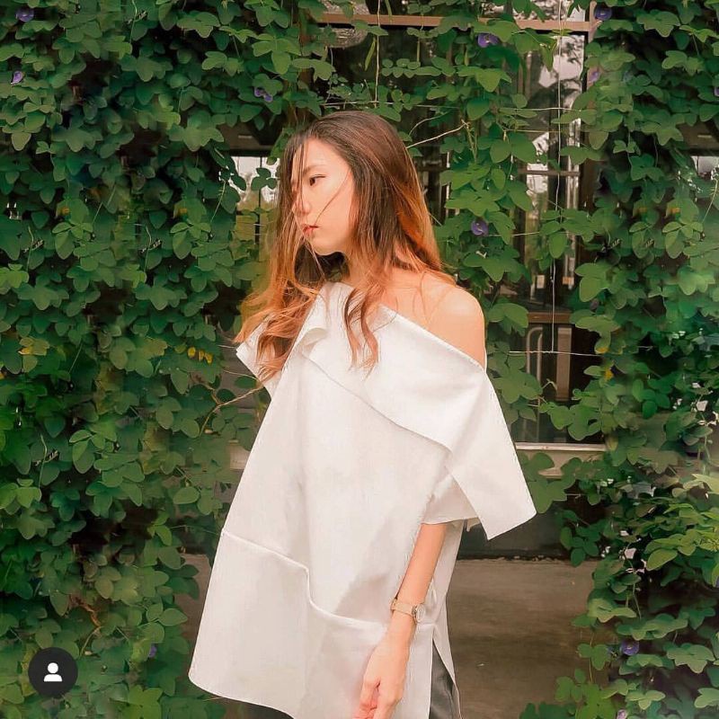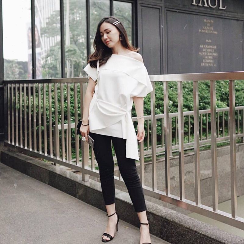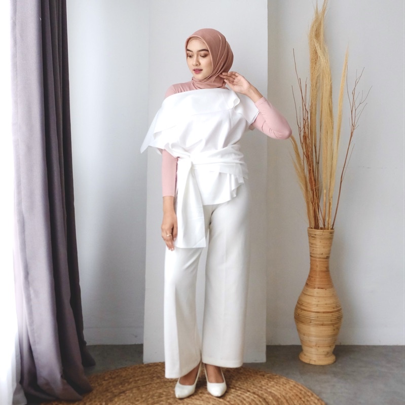 Rhei Collection - Atasan Wanita Putih Scuba Sabrina Blouse Cewek Missy Top White